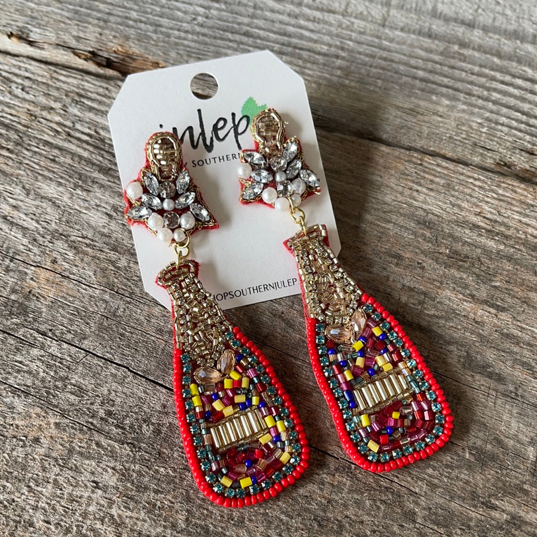 Statement Champagne Seed Beaded Drop Earrings With Rhinestone Accents