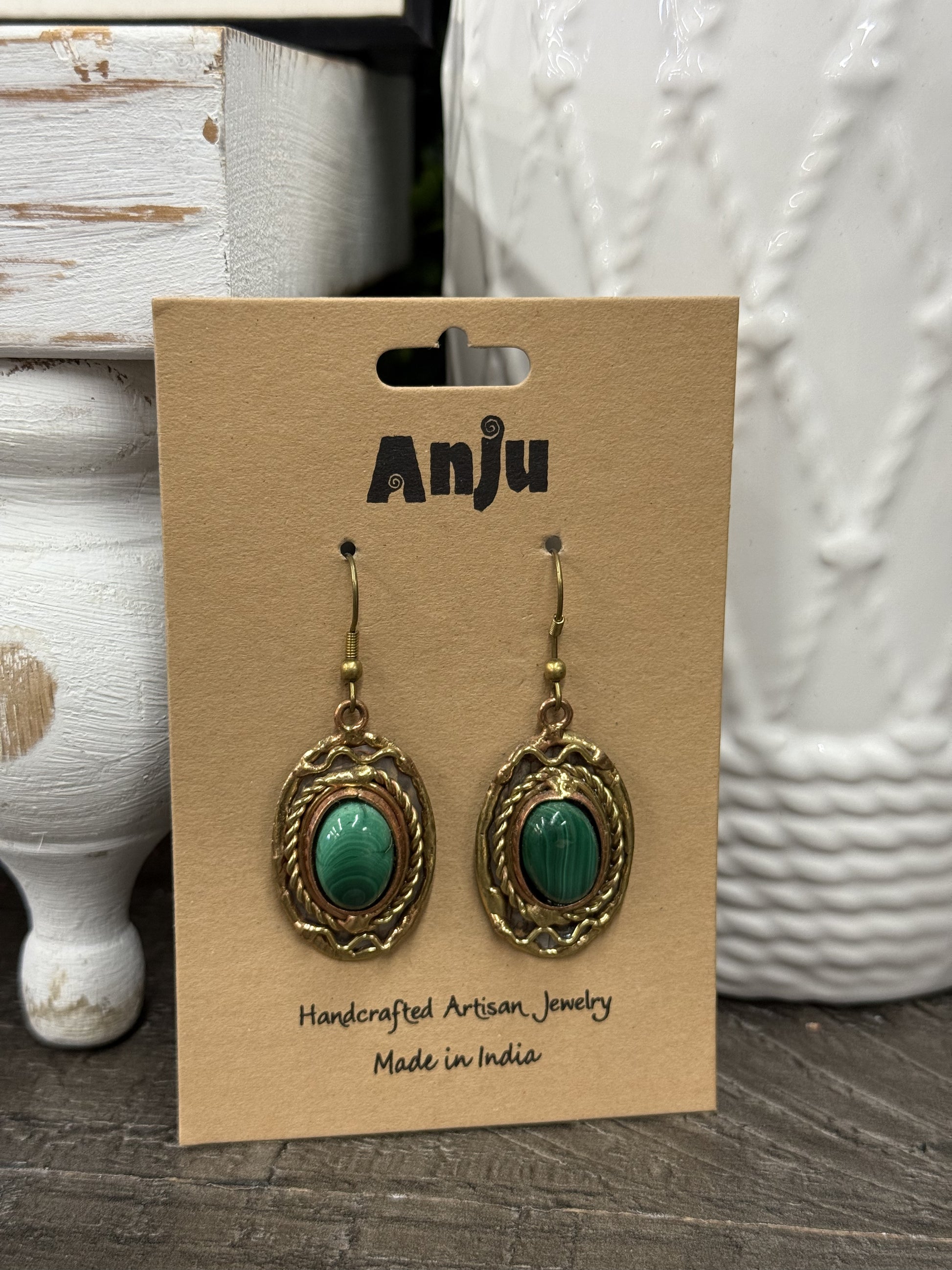 FINAL SALE - Anju Jewelry Malachite Stone Mixed Metal Earrings
