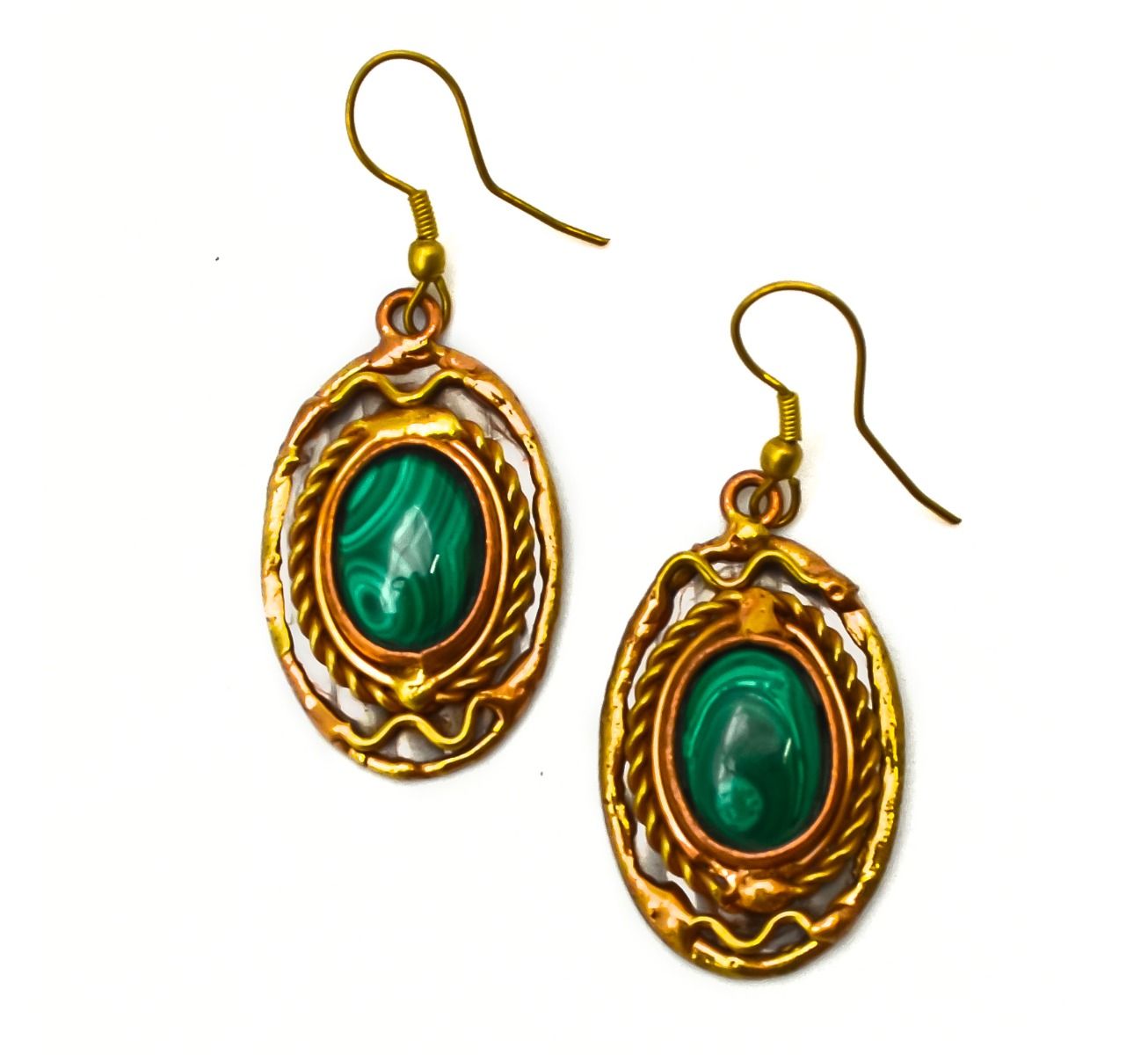 - Details: Oval pendant with brass wire rope accents & Malachite stone