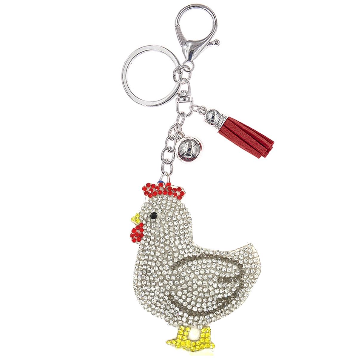 - Each rhinestone keychain has a key ring, a secure lobster claw clasp, a decorative ball and a fringe tassel