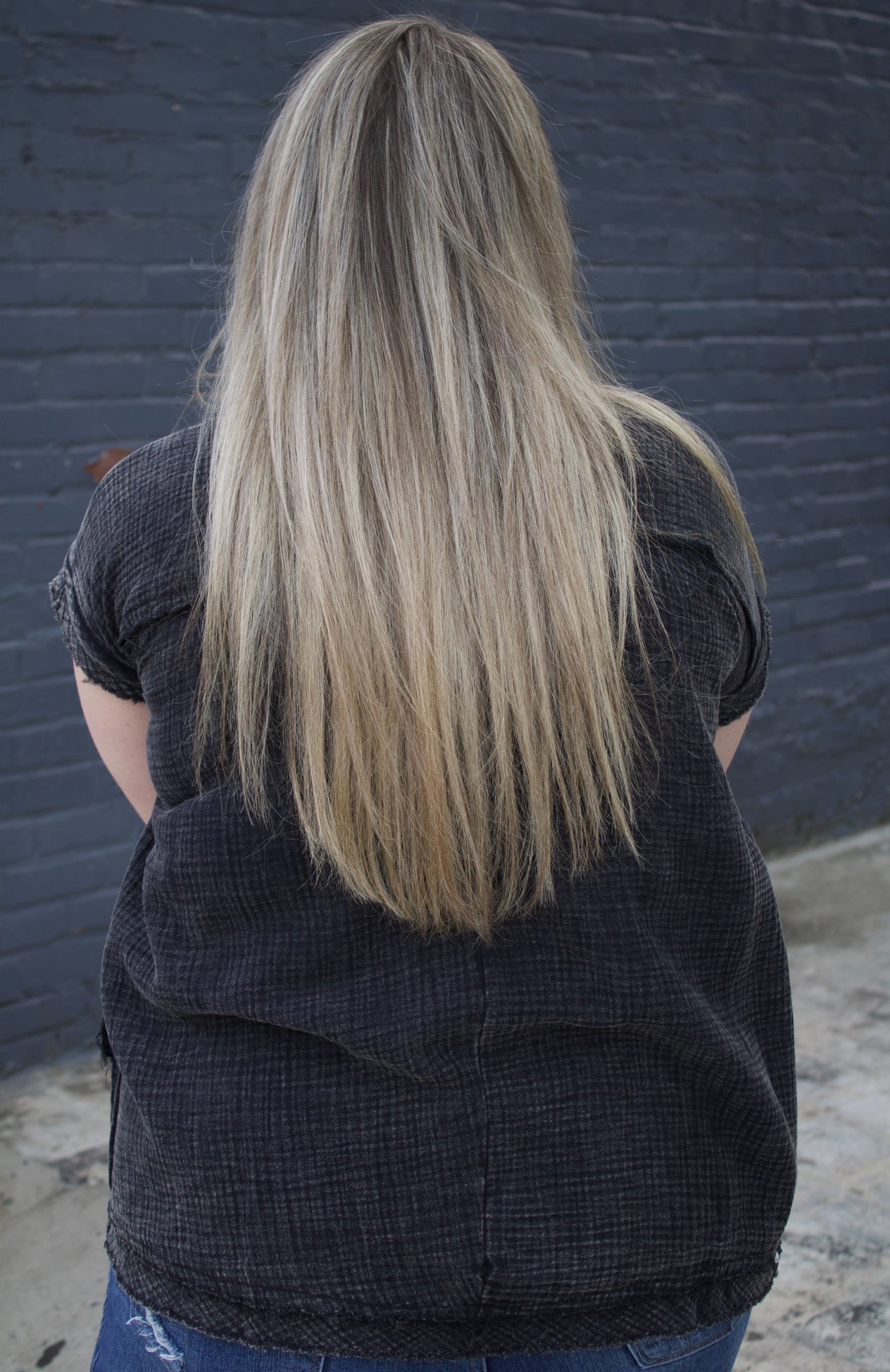 Expertly crafted with lightweight gauze material, The Kallyn Top boasts a stylish v-neck and raw edge details. Stay both chic and comfortable with the added convenience of pockets. Perfect for any occasion, dress it up or down for a versatile look.