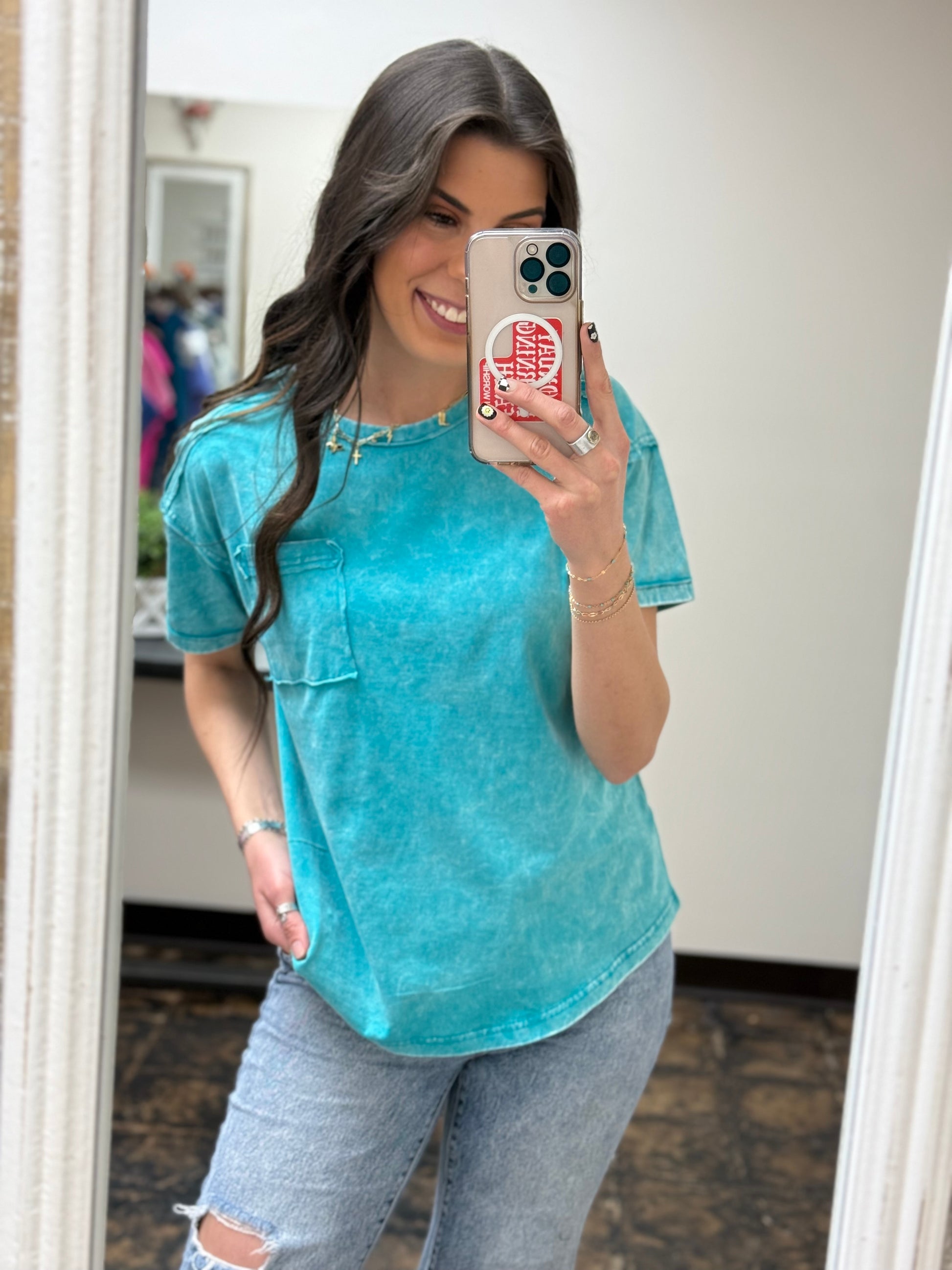 The Molly Acid Wash Tee boasts an edgy acid wash design and exposed seams for a unique twist on the classic round neck tee. The front pocket adds functionality, while the comfy material ensures all-day comfort. Perfect for effortlessly cool and comfortable style.