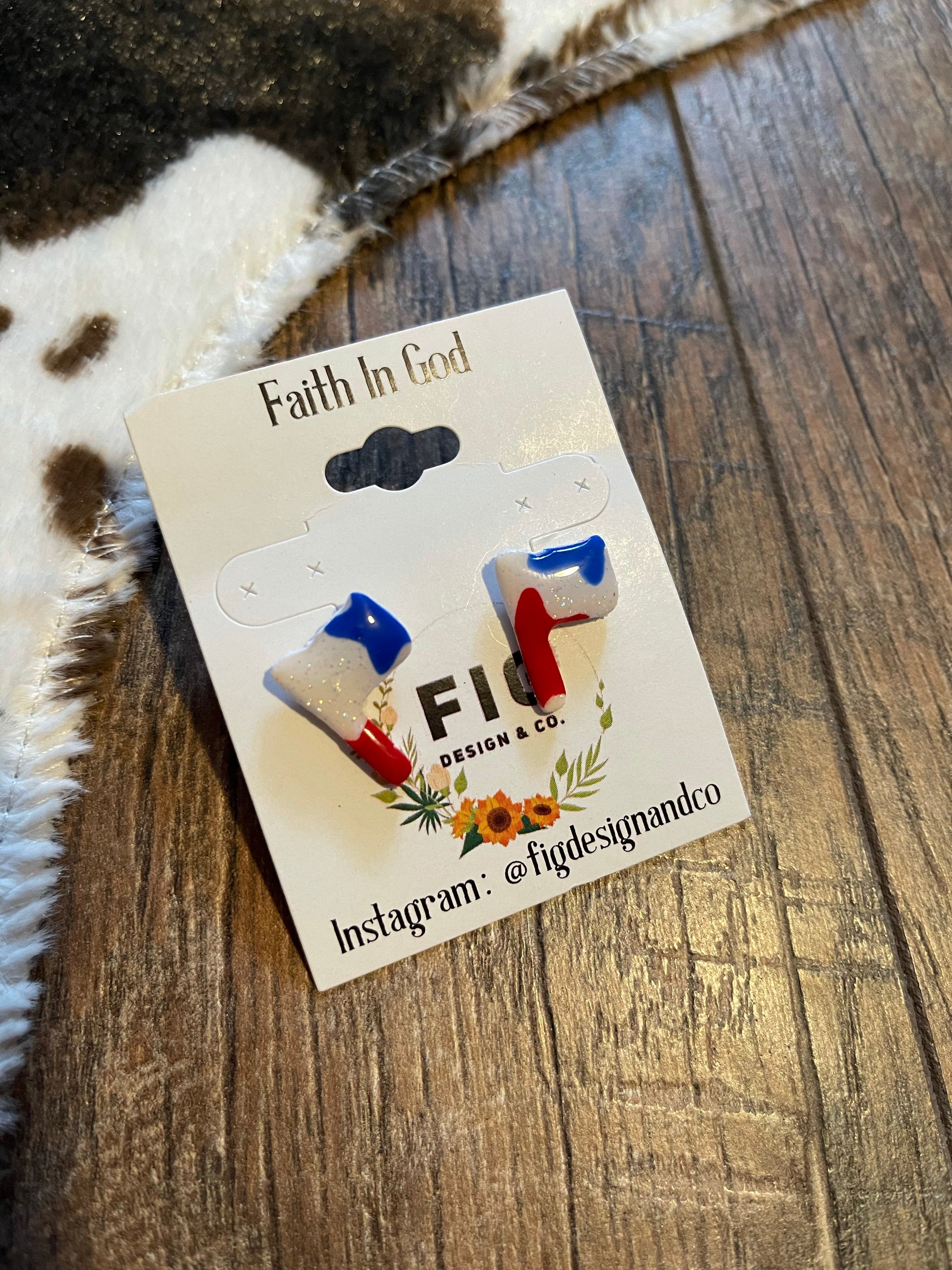 FINAL SALE - FIG // Handmade Clay Earrings - Red, White, & Blue Flag Studs