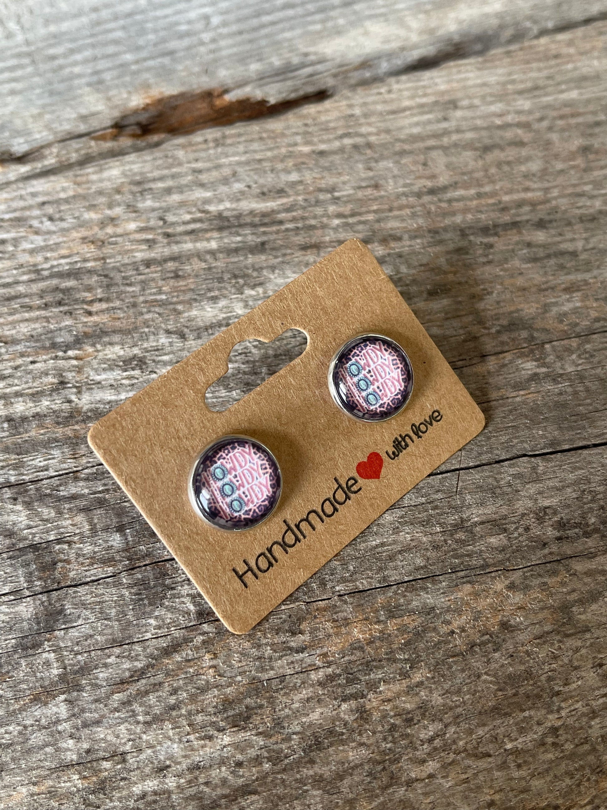 Handmade Howdy Stacked Glass 12mm Stud Earrings