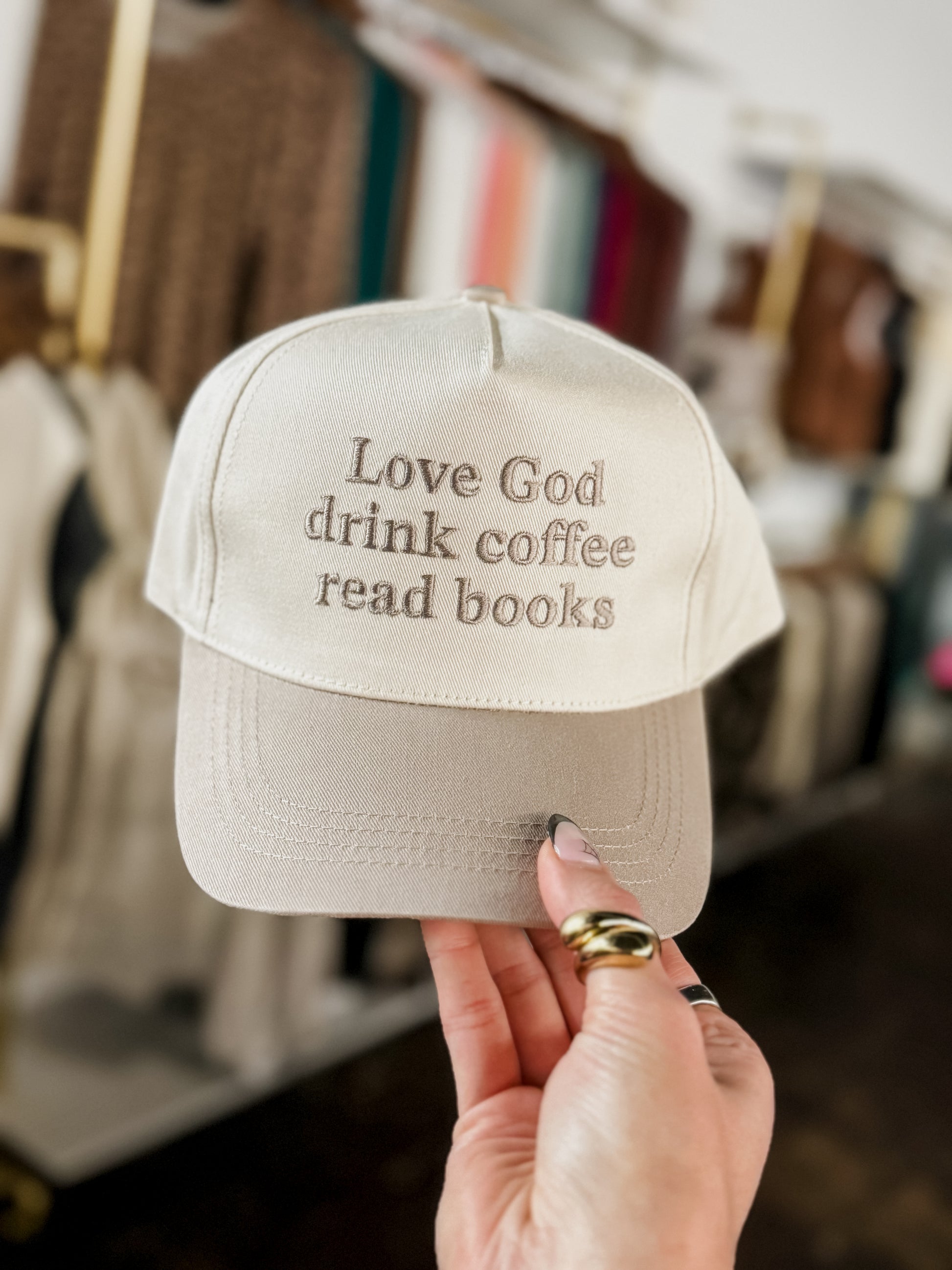 The "Love God, Drink Coffee, Read Books" Hat - Tan