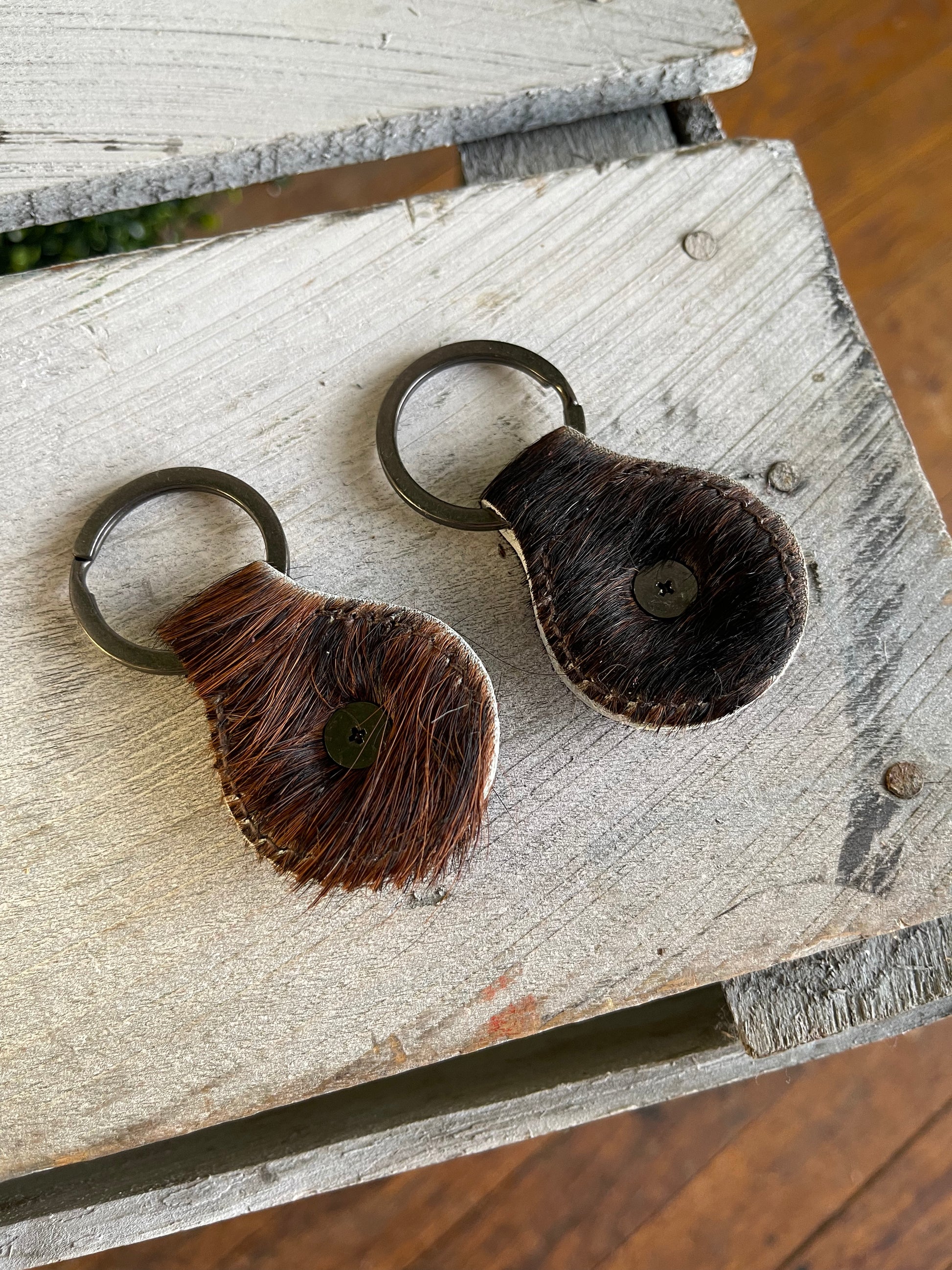 - Cow hide fob is natural and will wear under normal conditions. Each key fob will vary slightly as each pelt will have a unique pattern, no two are just alike