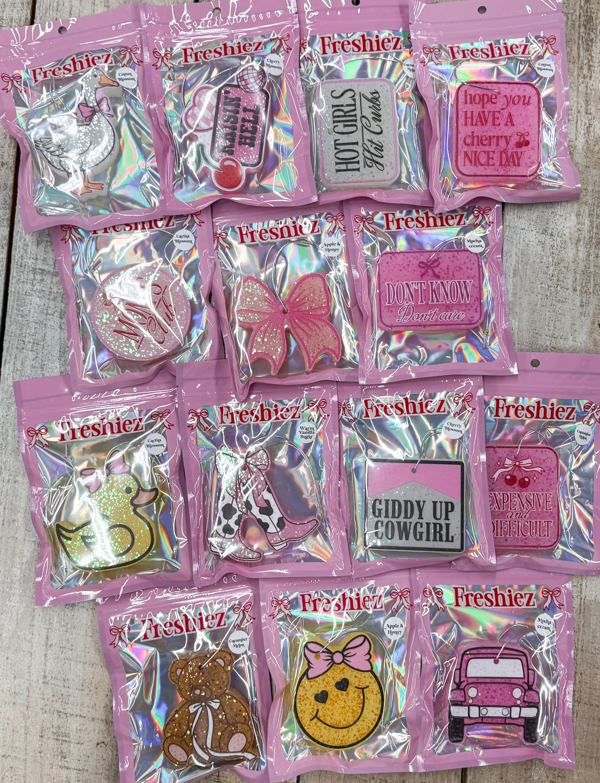 These scented everyday air fresheners are perfect for your car, closet, bathroom, locker, or any small space! Come in a variety of cute designs and delightful scents.