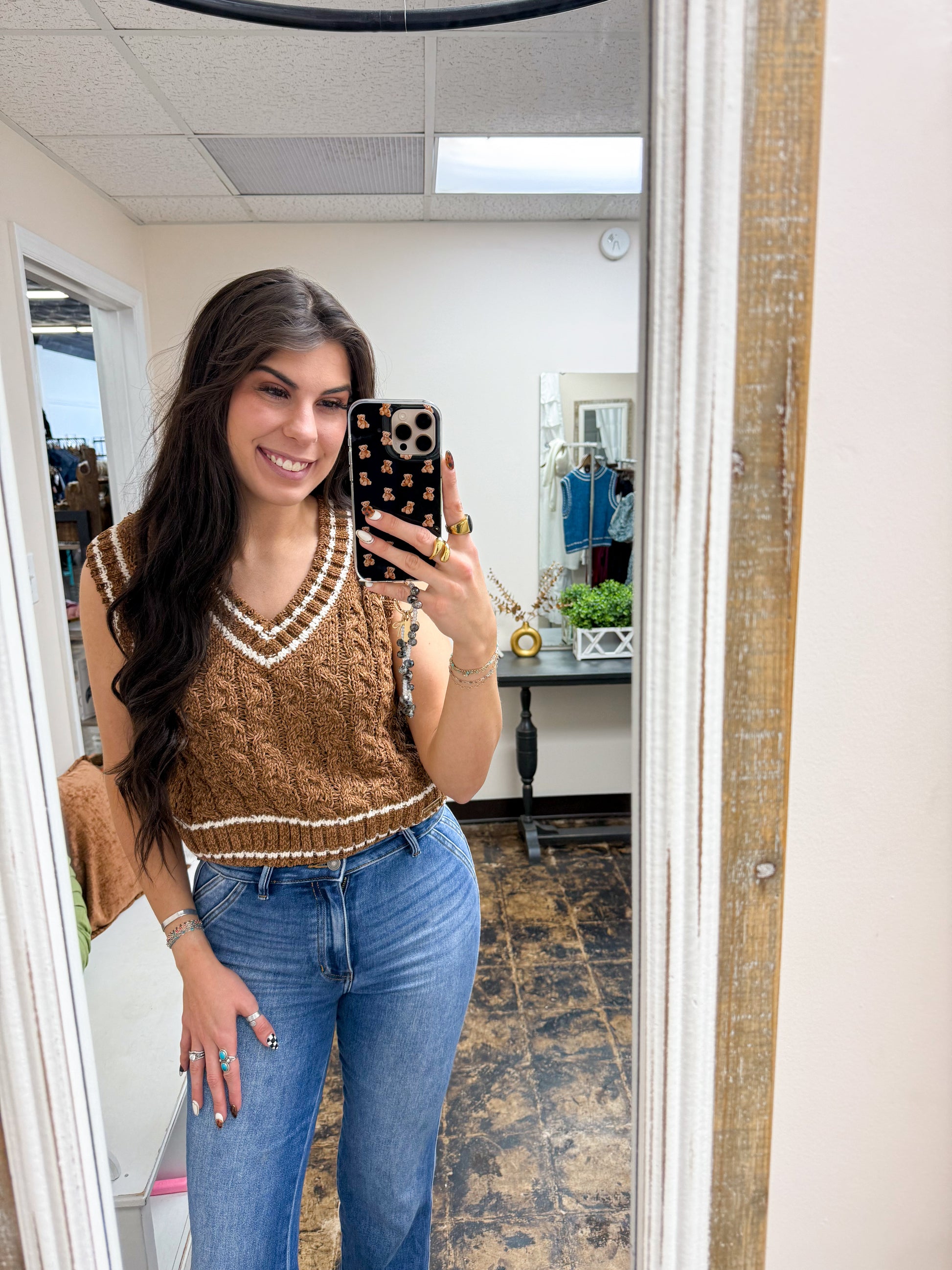 Simply Southern - Bliss Chenille Sweater Vest Top - Umber - 2025