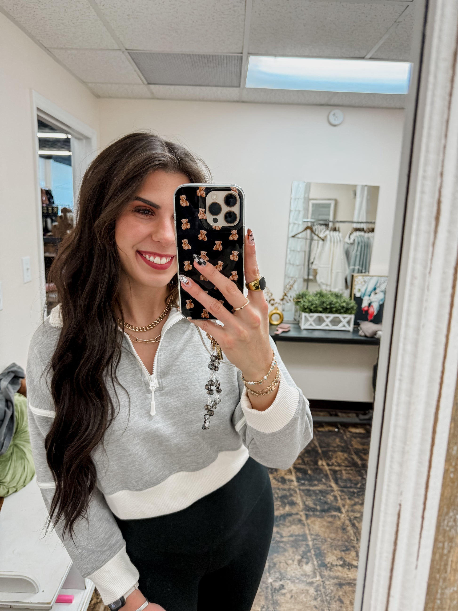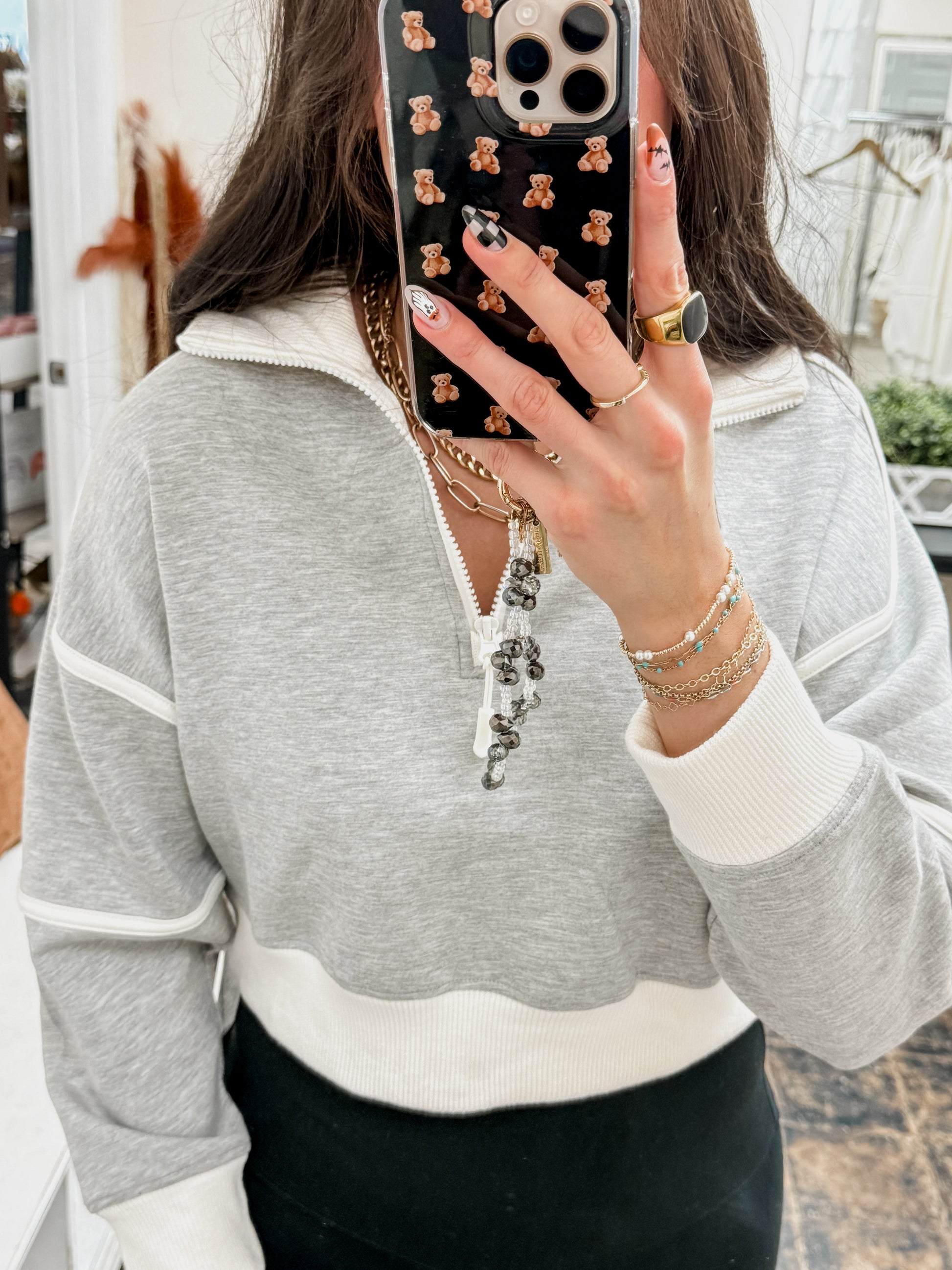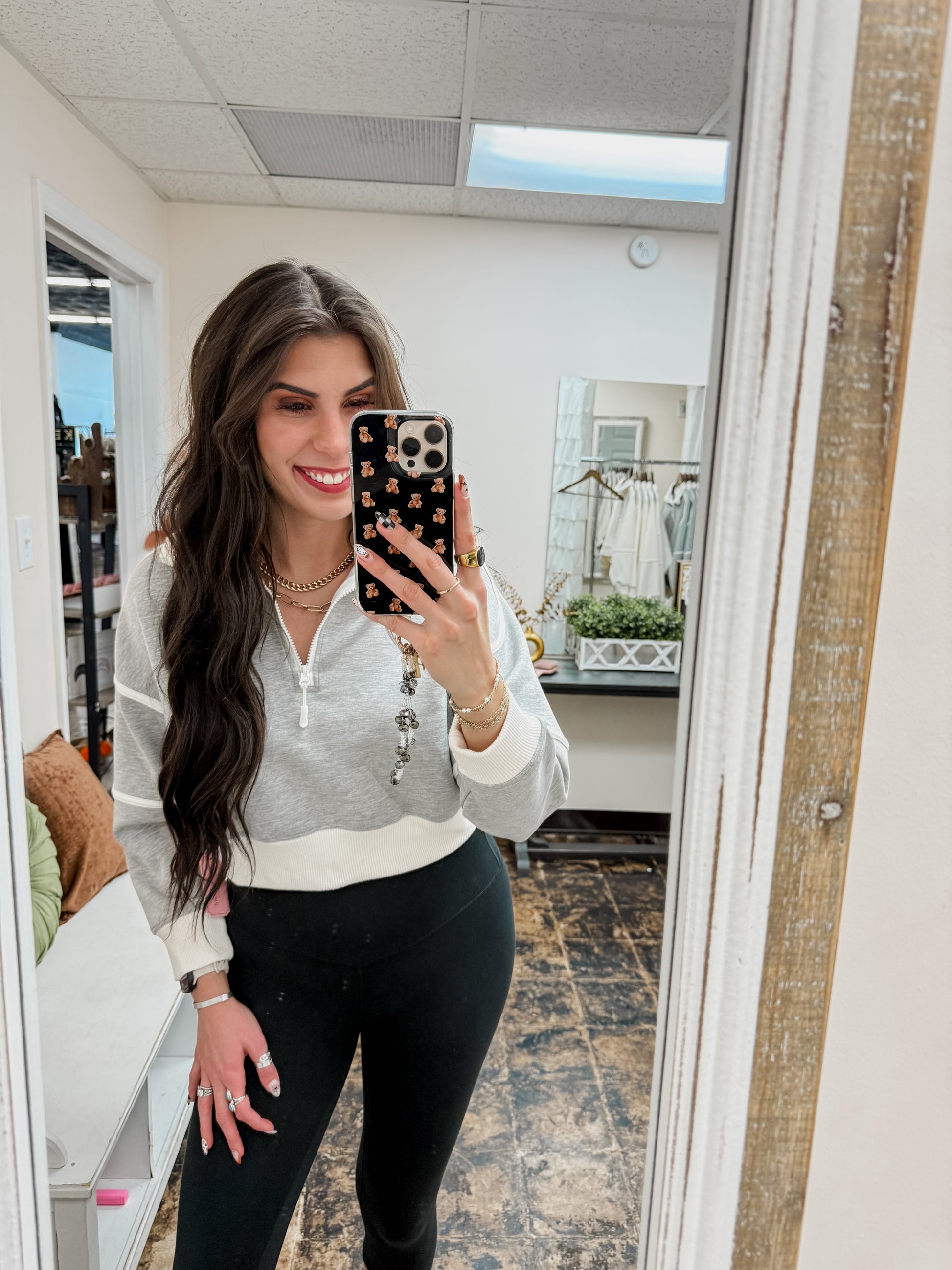 Simply Southern - Contrast Quarter Zip Pullover - Heather Grey / Oatmeal - 2025