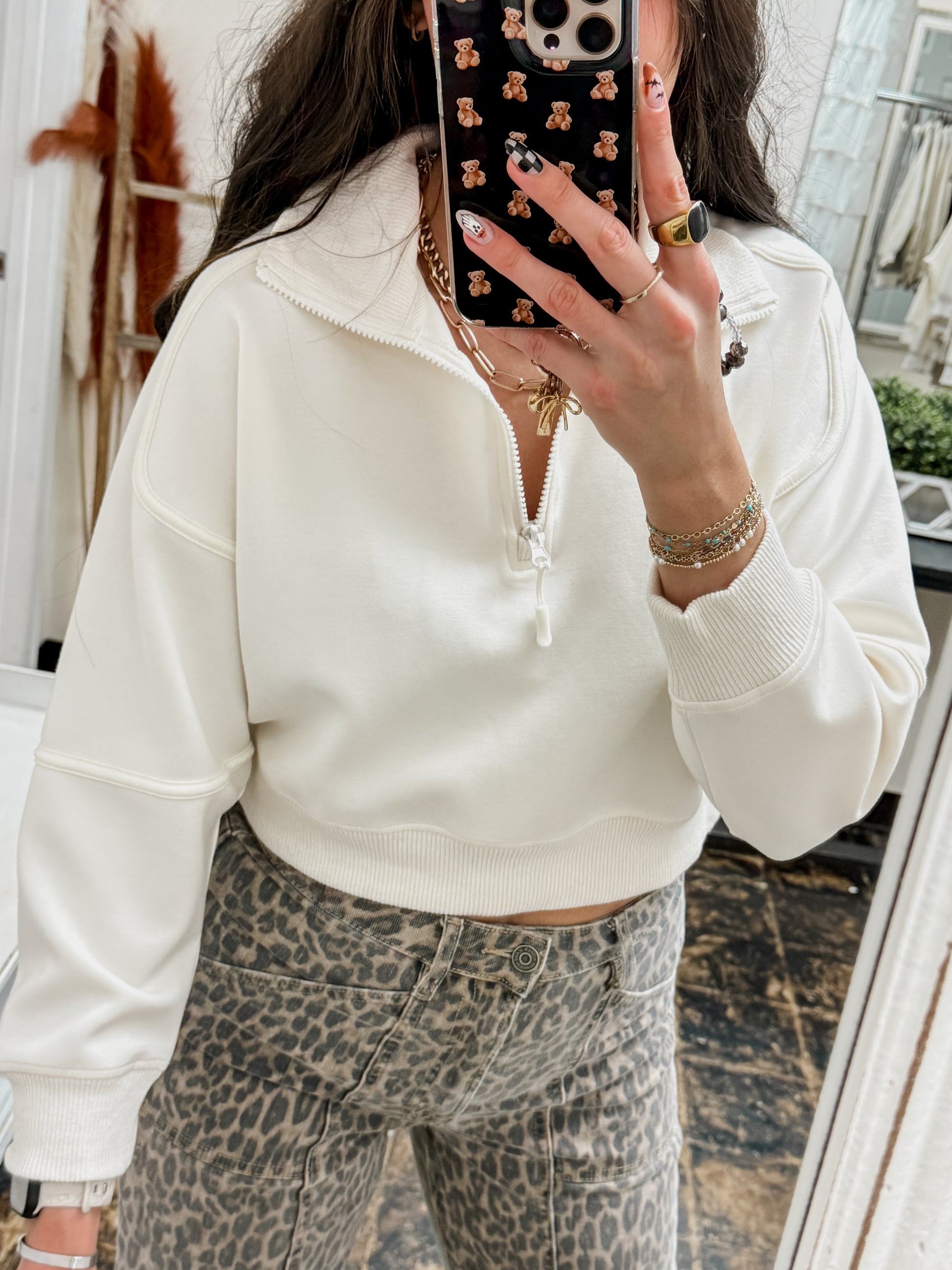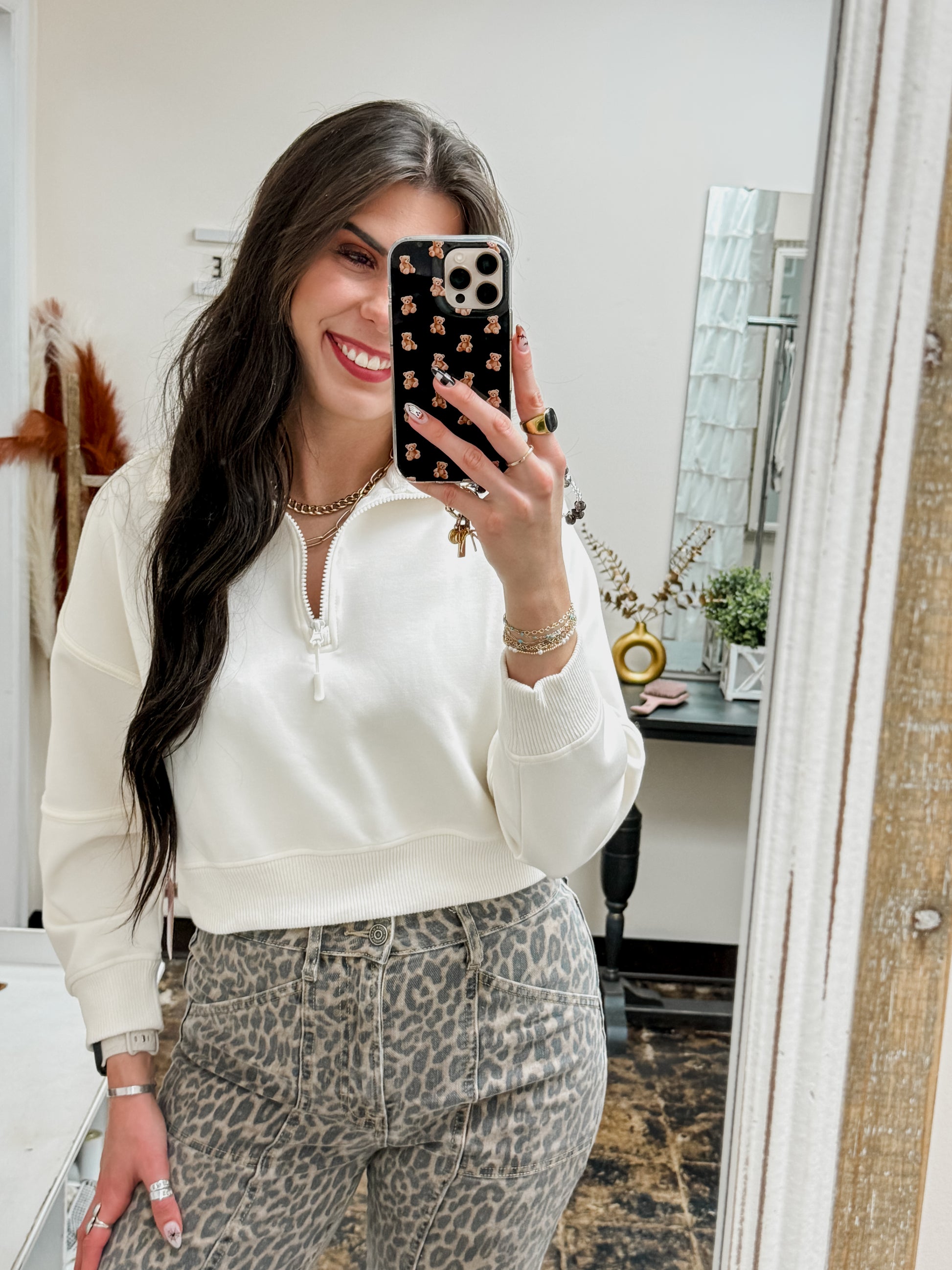 Simply Southern - Contrast Quarter Zip Pullover - Oatmeal - 2025