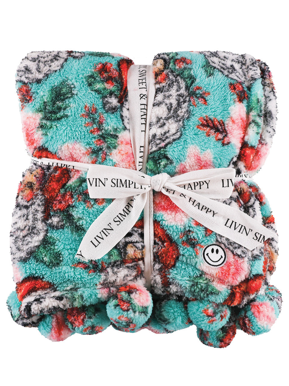 Wrap yourself in softness with this Simply Southern Soft & Comfy Blanket. This 50" x 65" blanket features a cute pom pom detail on two ends and an embroidered smiley patch for a look that's cozy and playful. Stay warm and stylish with this classic blanket.