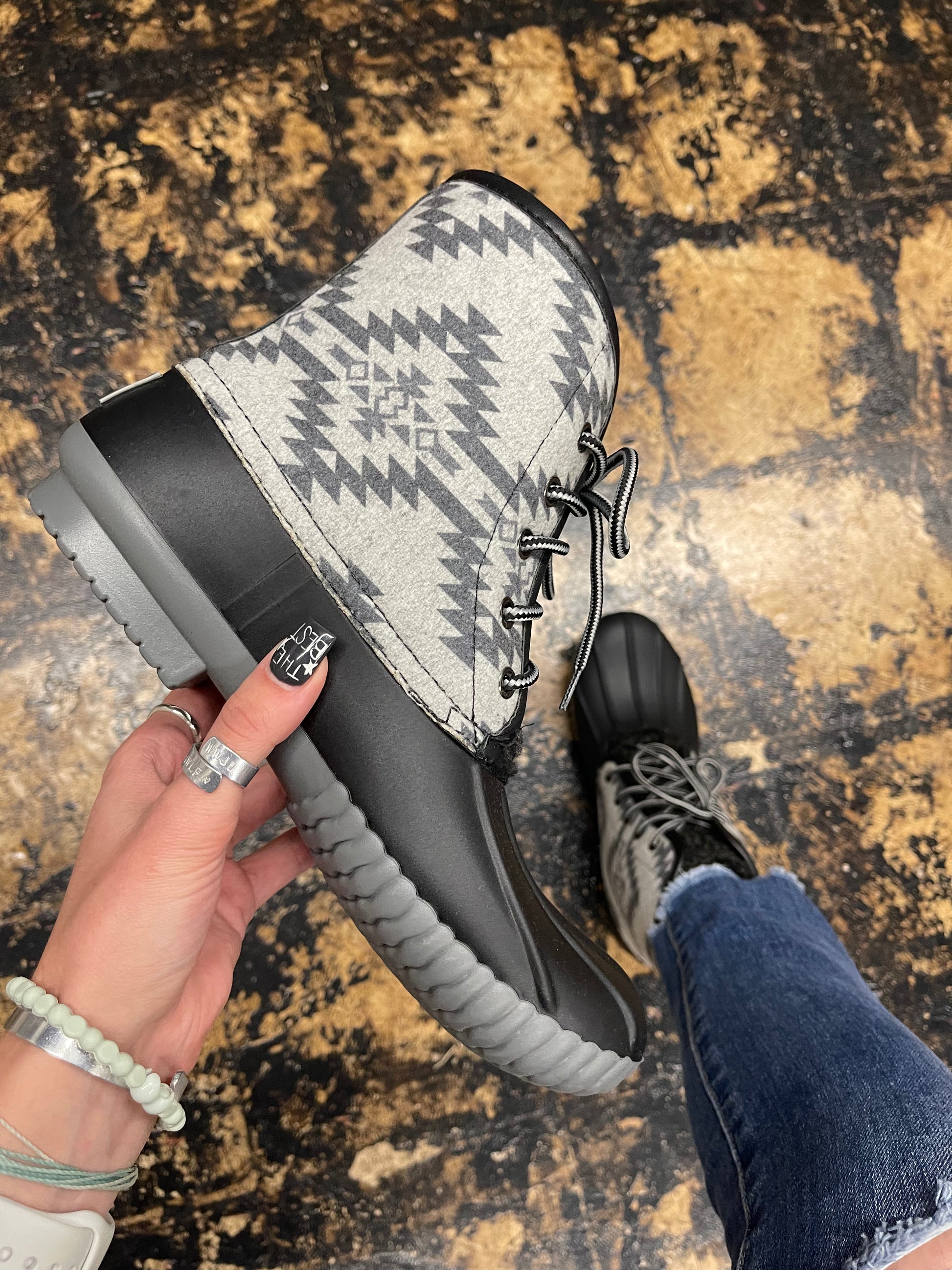 FINAL SALE - Simply Southern - Lace Up Duck Boots - Aztec