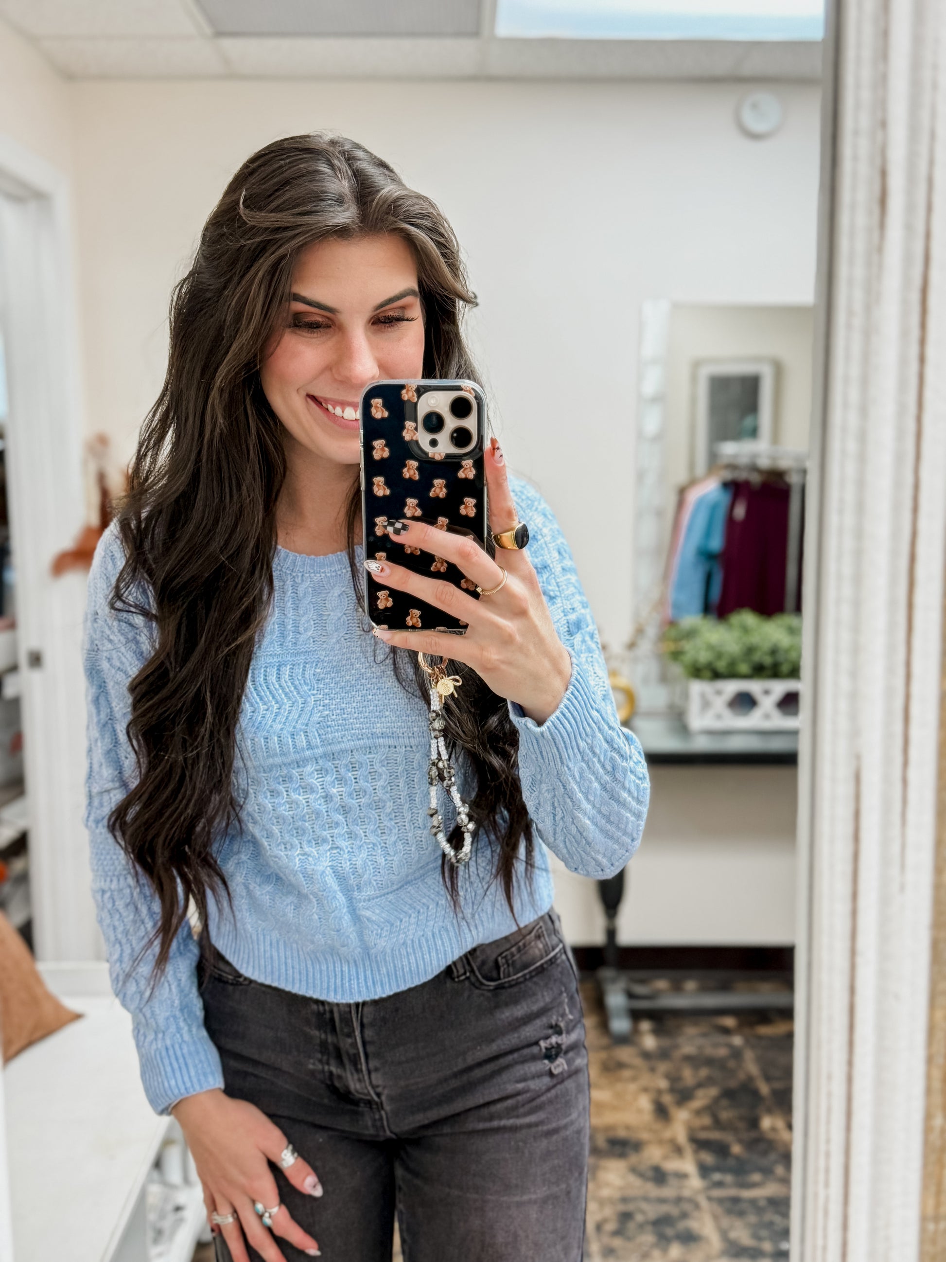 Add a flirty twist to your cozy collection with the Simply Southern Open Back Bow Sweater in blue. The playful bow detail on the open back pairs perfectly with a classic round neckline, while the low back cutout adds a touch of surprise to your casual look. Soft and sweet, this sweater is perfect for those who love a little charm in their chill.