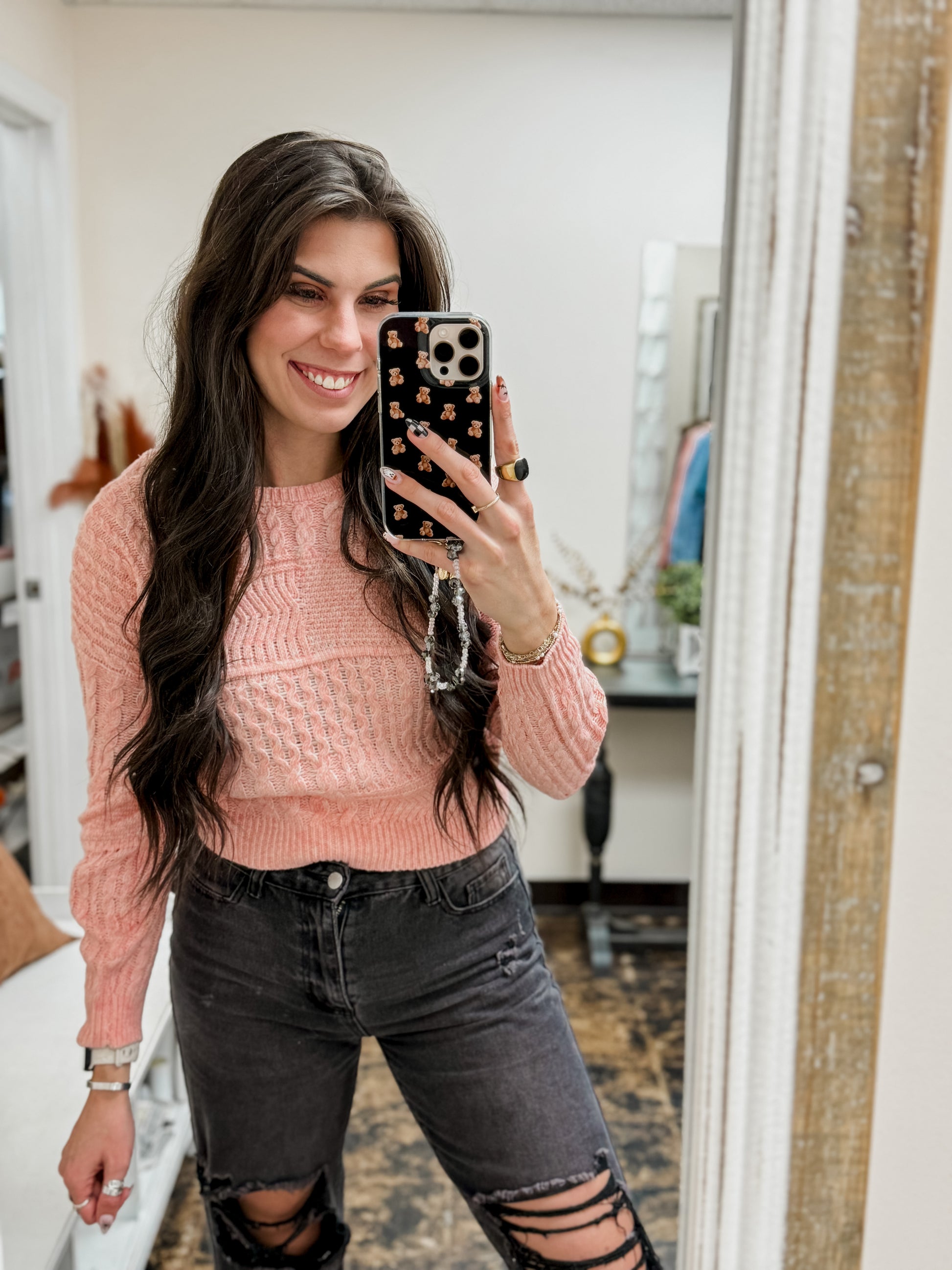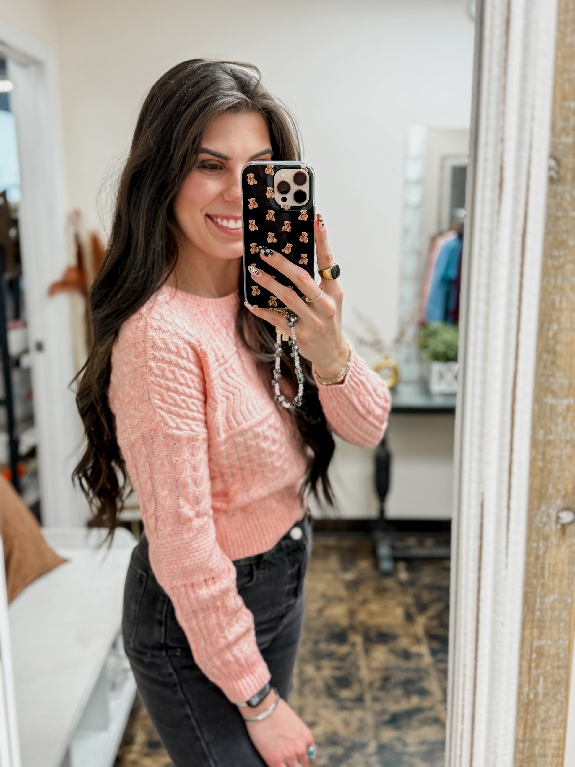 Add a flirty twist to your cozy collection with the Simply Southern Open Back Bow Sweater in pink. The playful bow detail on the open back pairs perfectly with a classic round neckline, while the low back cutout adds a touch of surprise to your casual look. Soft and sweet, this sweater is perfect for those who love a little charm in their chill.