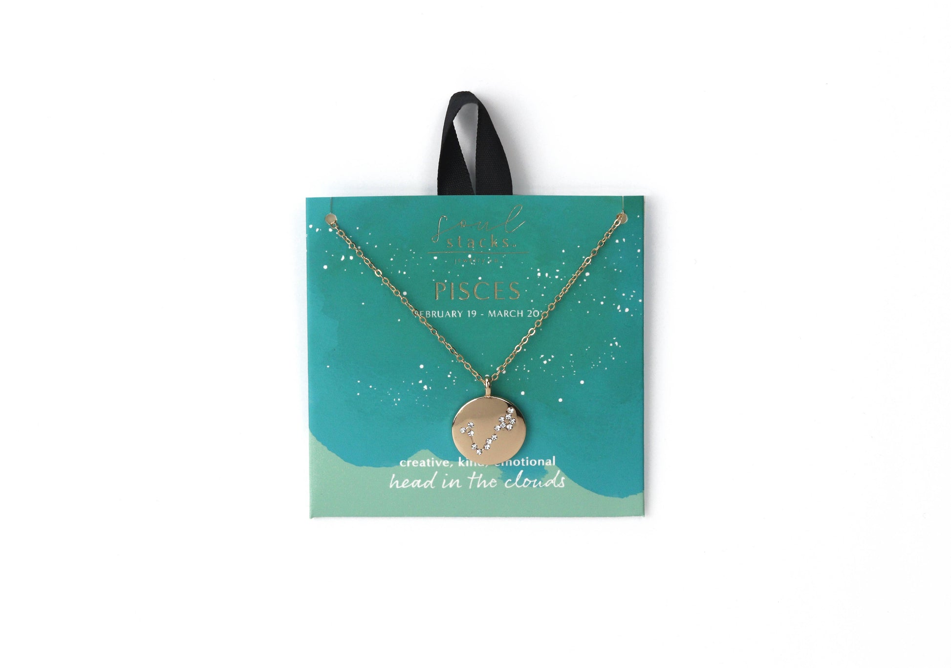 Some call it fate, some call it destiny – we call it a really cute accessory. Find out what's written in your stars with our gold-tone zodiac necklaces. Each pendant sparkles with constellations Aries, Taurus, Gemini, Cancer, Leo, Virgo, Libra, Scorpio, Capricorn, Sagittarius, Aquarius or Pisces. Gorgeous watercolor packaging includes characteristics of each sign and a fun coordinating quote.