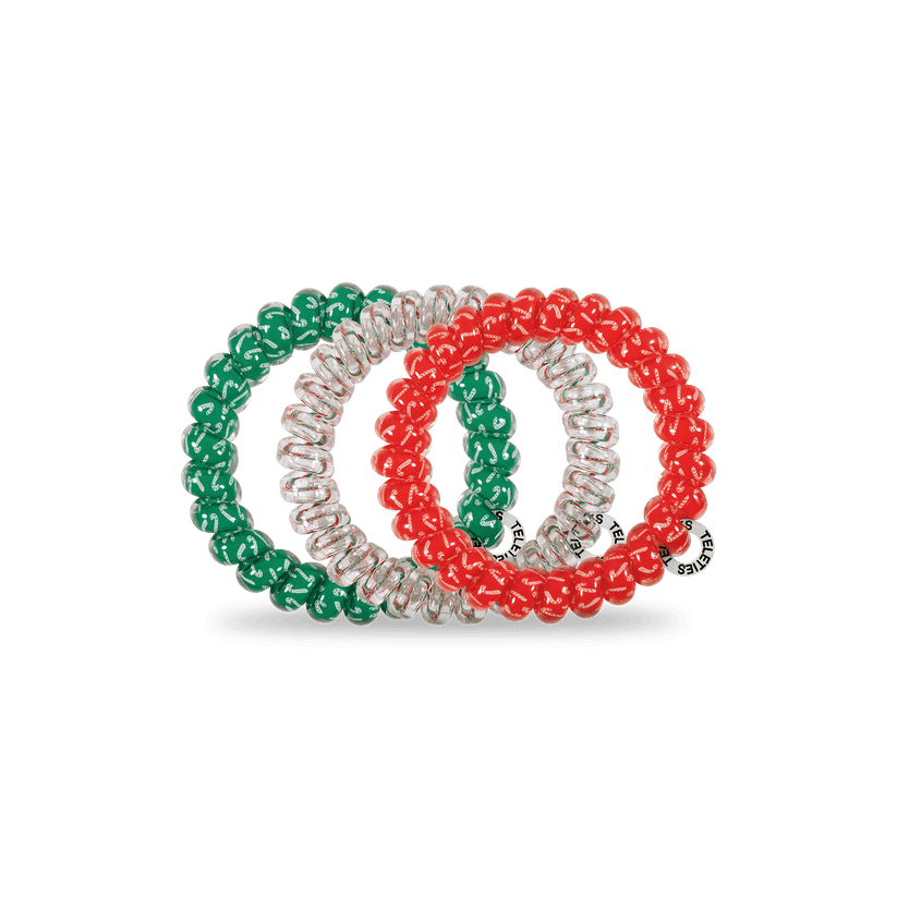 Hooked on Christmas Large Hair Ties in Green Red offer a strong grip without damage, doubling as a chic wrist accessory when not in use. Your new favorite hair essentials all year round.
