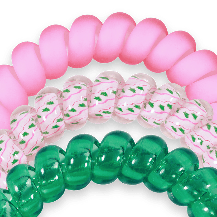 Merry Pinkmas Large Hair Ties in Pink and Green offer a strong grip without damage, doubling as a chic wrist accessory when not in use. Your new favorite hair essentials all year round.