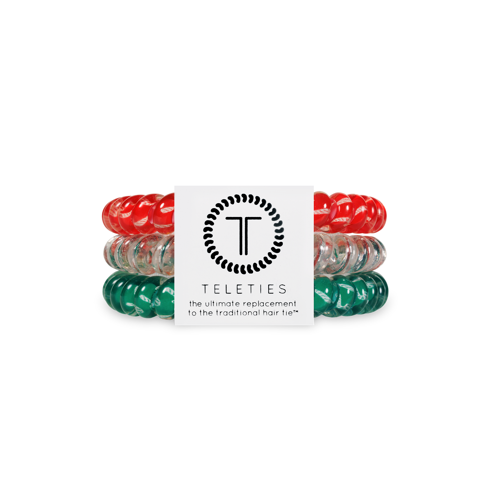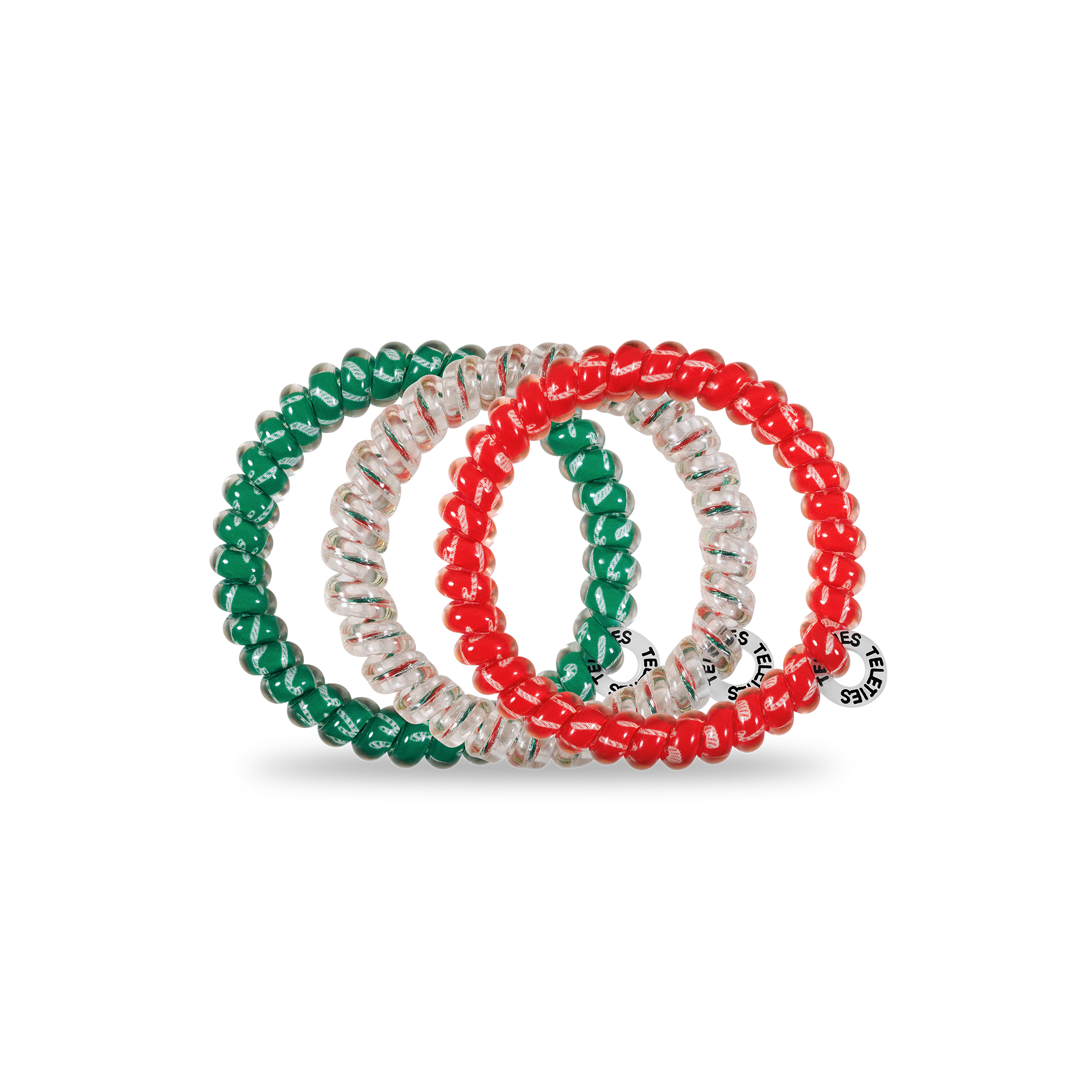 Hooked on Christmas Small Hair Ties in Red and Green offer a strong grip without damage, doubling as a chic wrist accessory when not in use. Your new favorite hair essentials all year round.