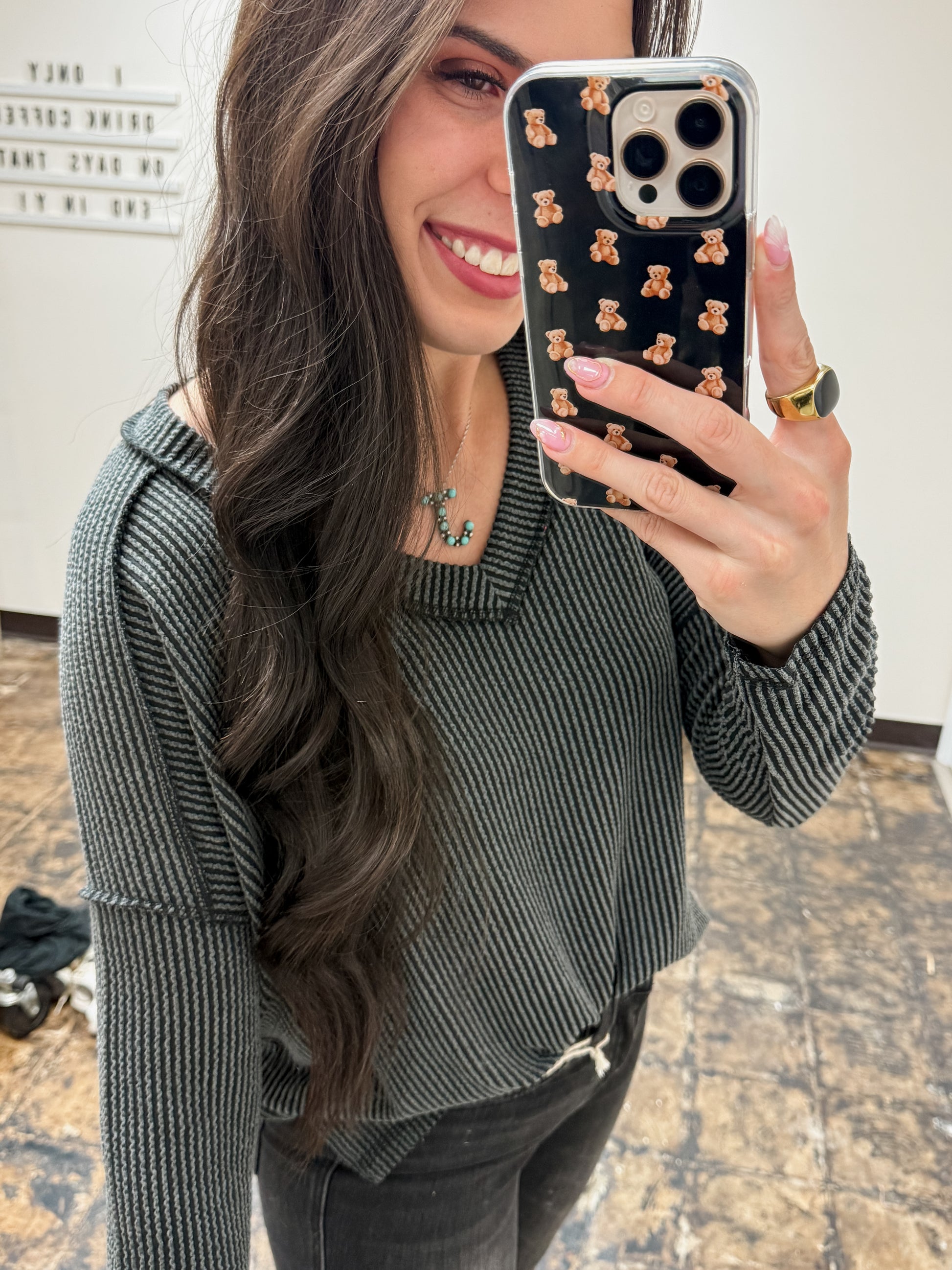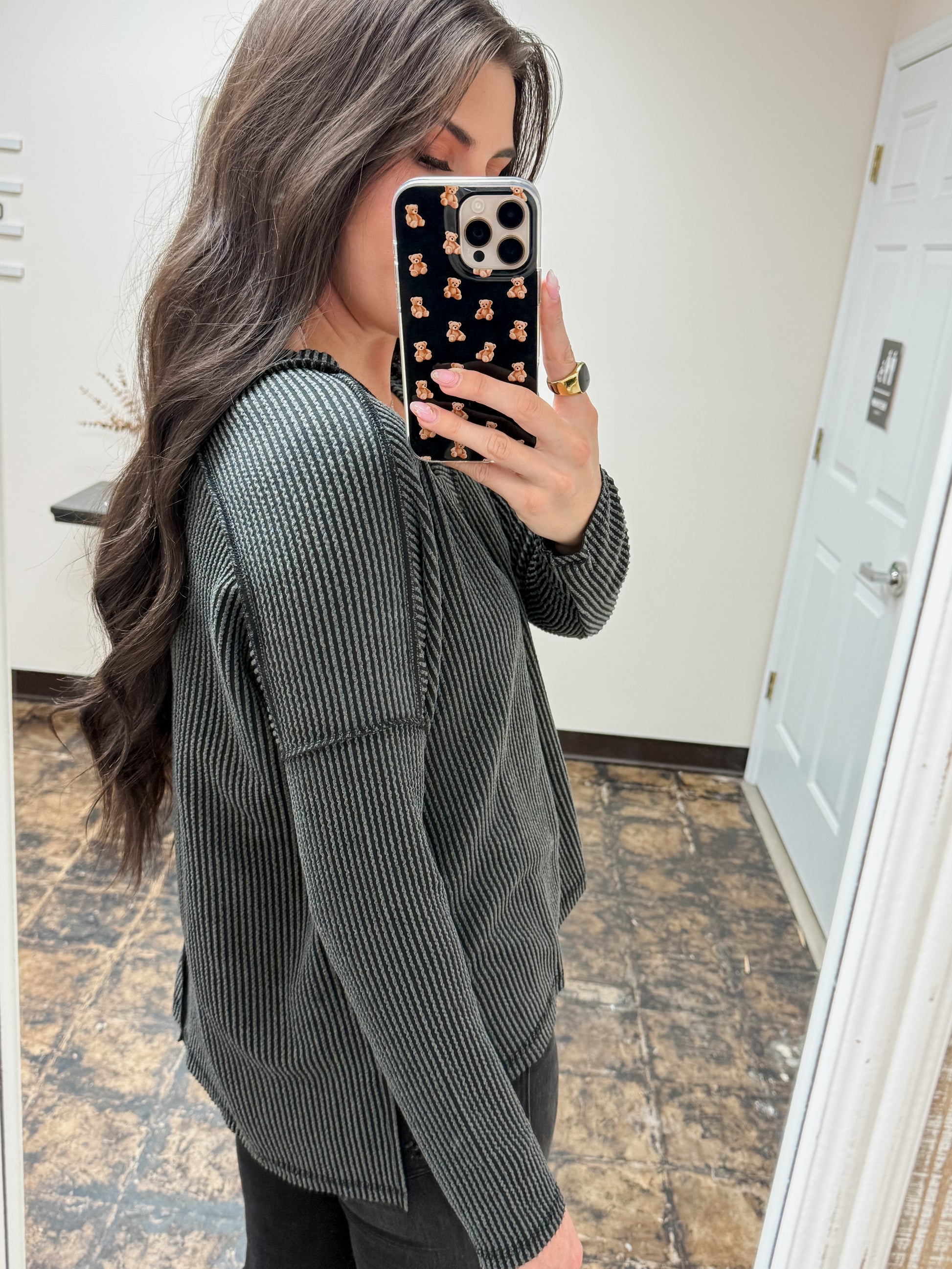 The Ansleigh Corded Long Sleeve Top - Charcoal