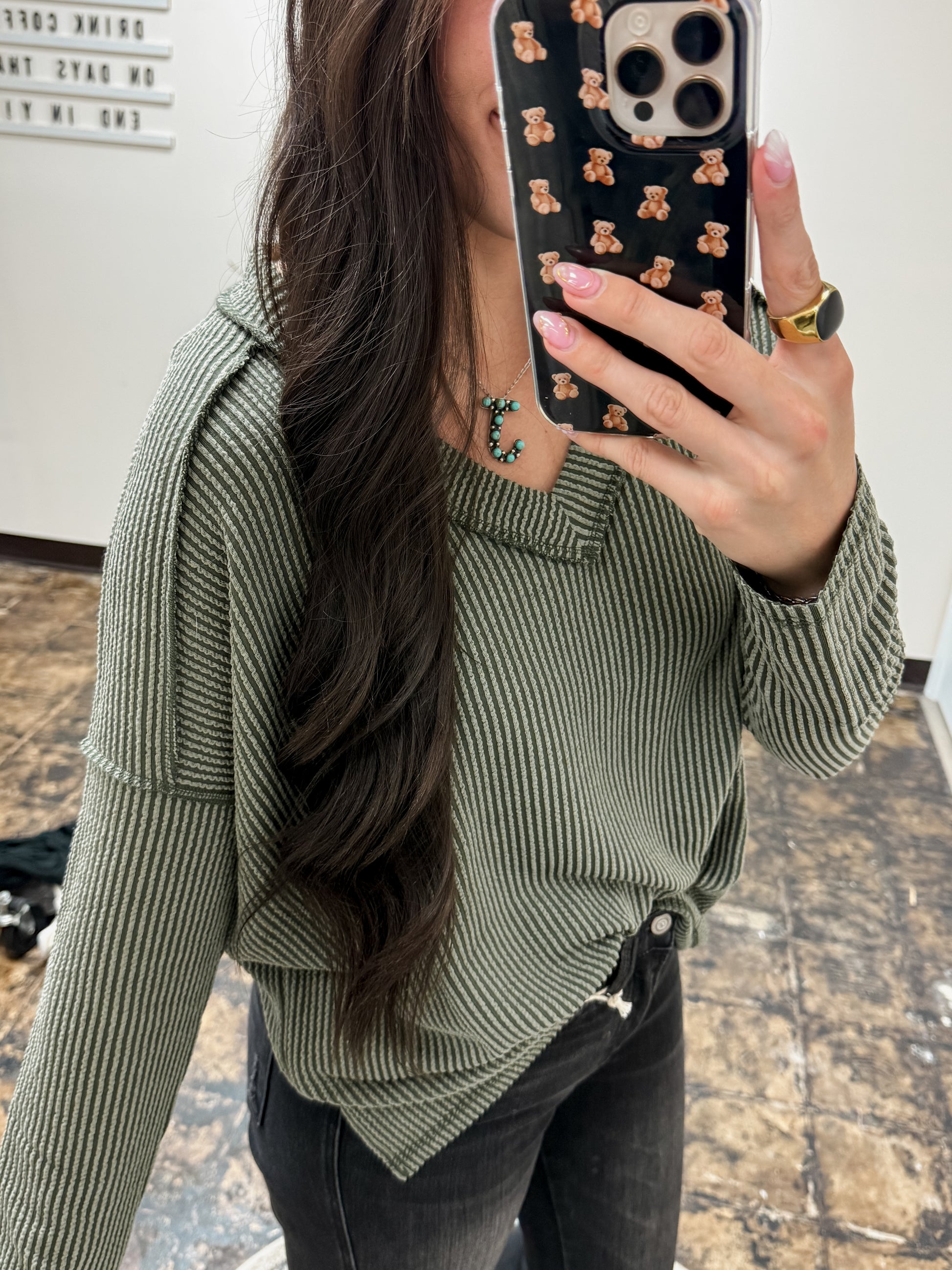 The Ansleigh Corded Long Sleeve Top - Dark Olive