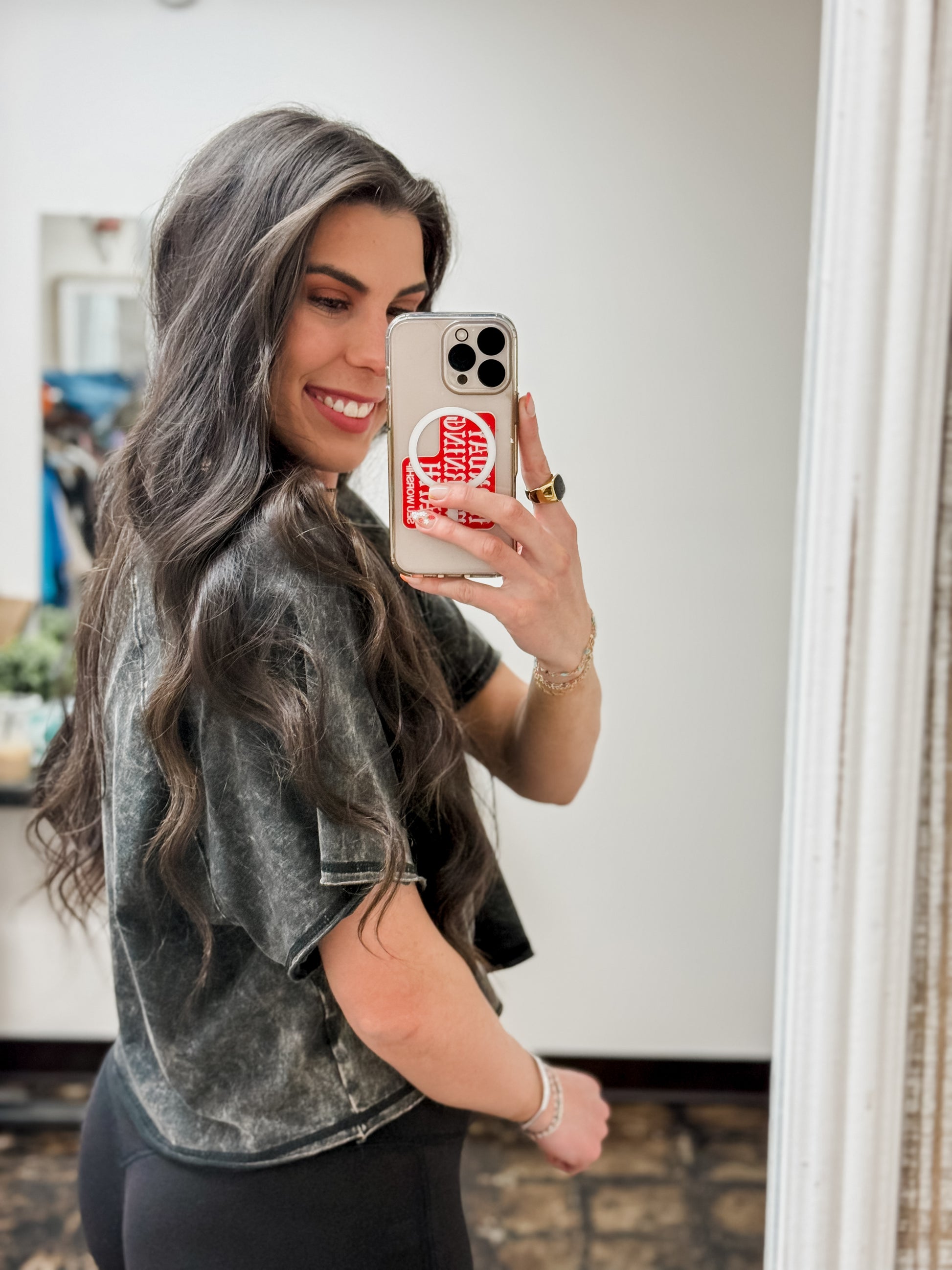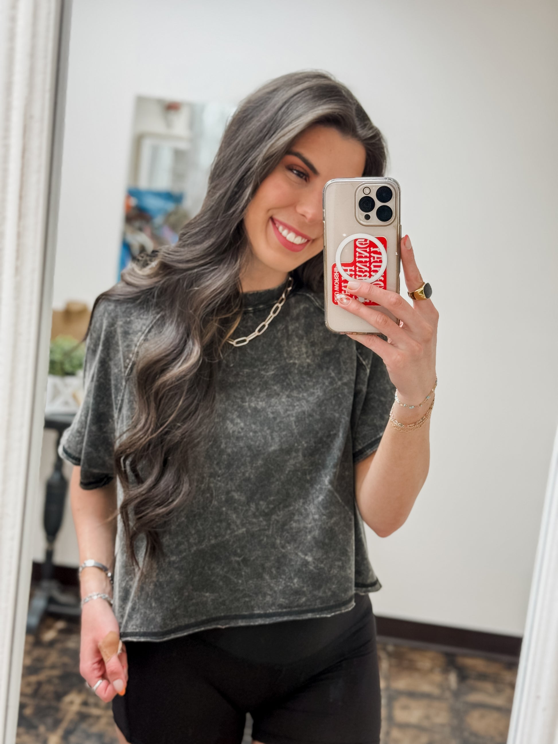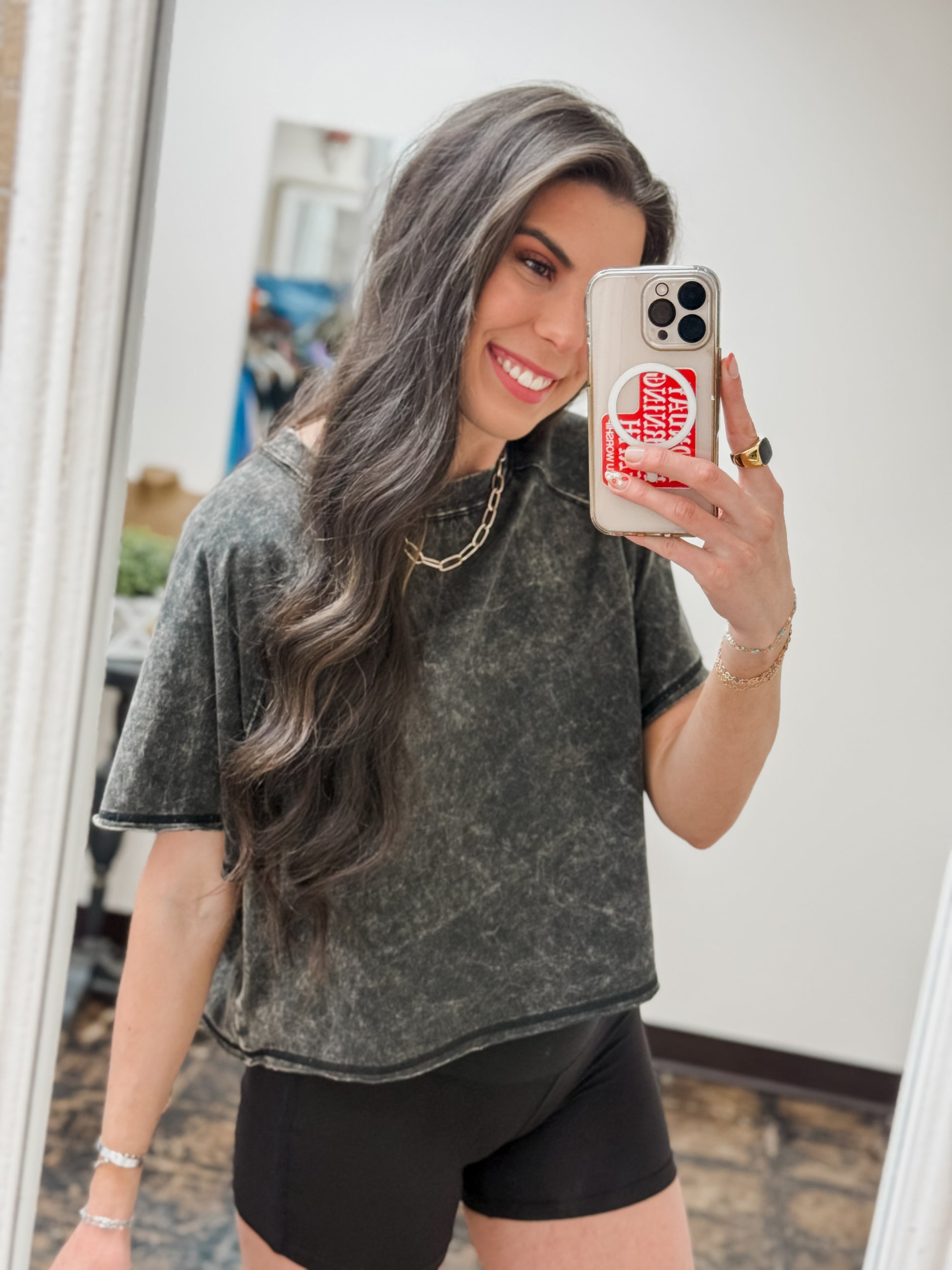 The Audrey Acid Wash Cropped Tee - Ash Black