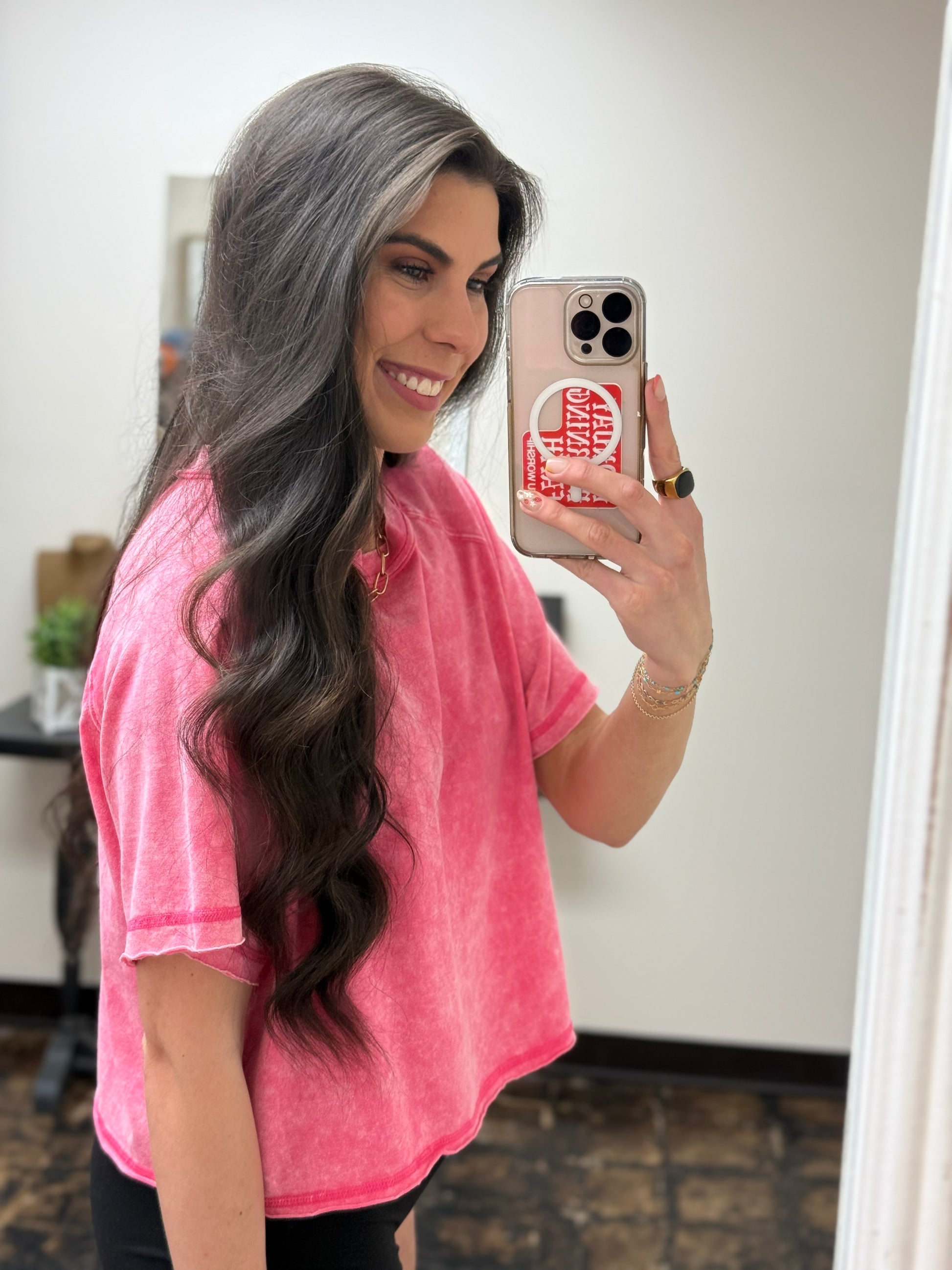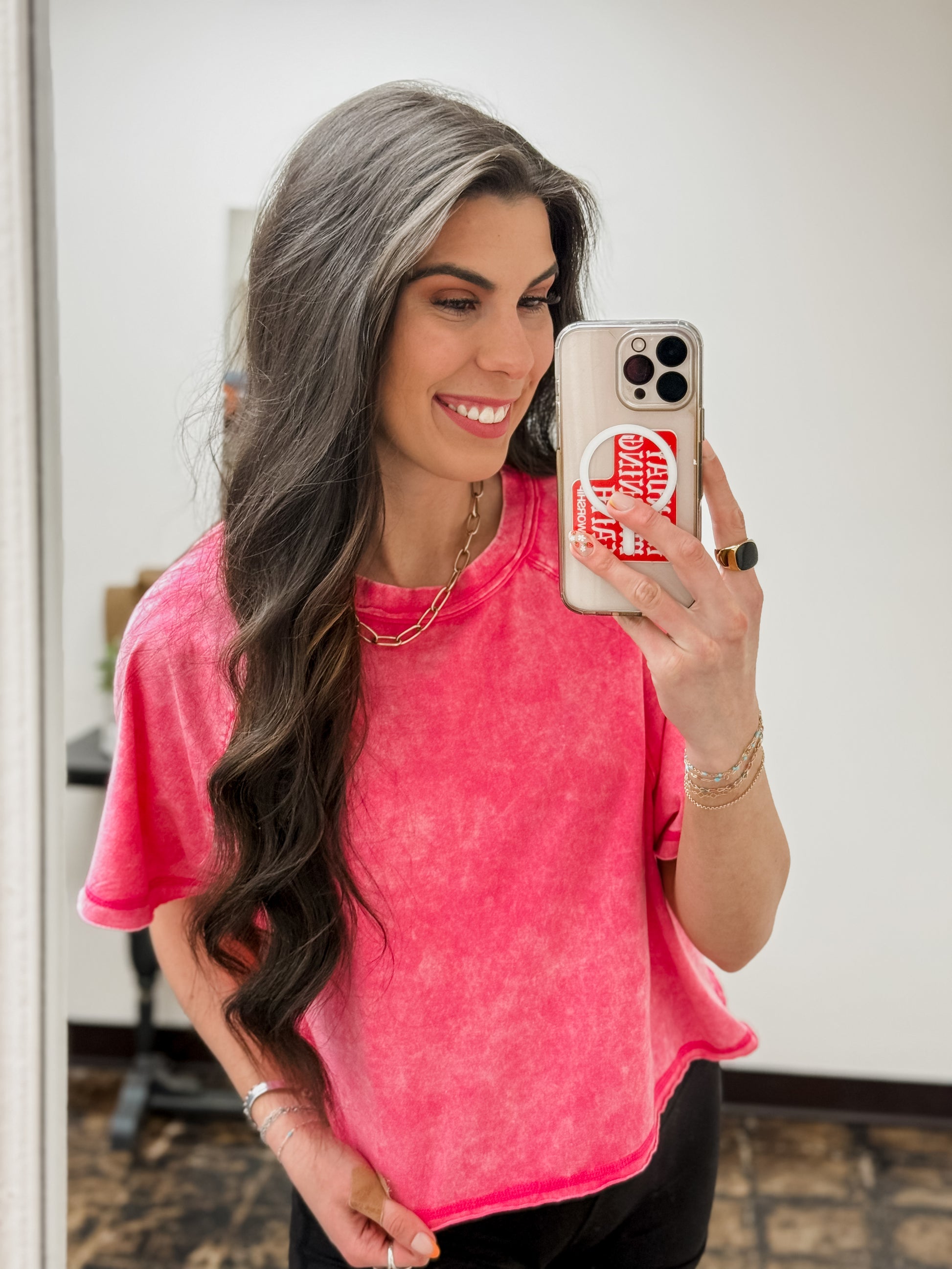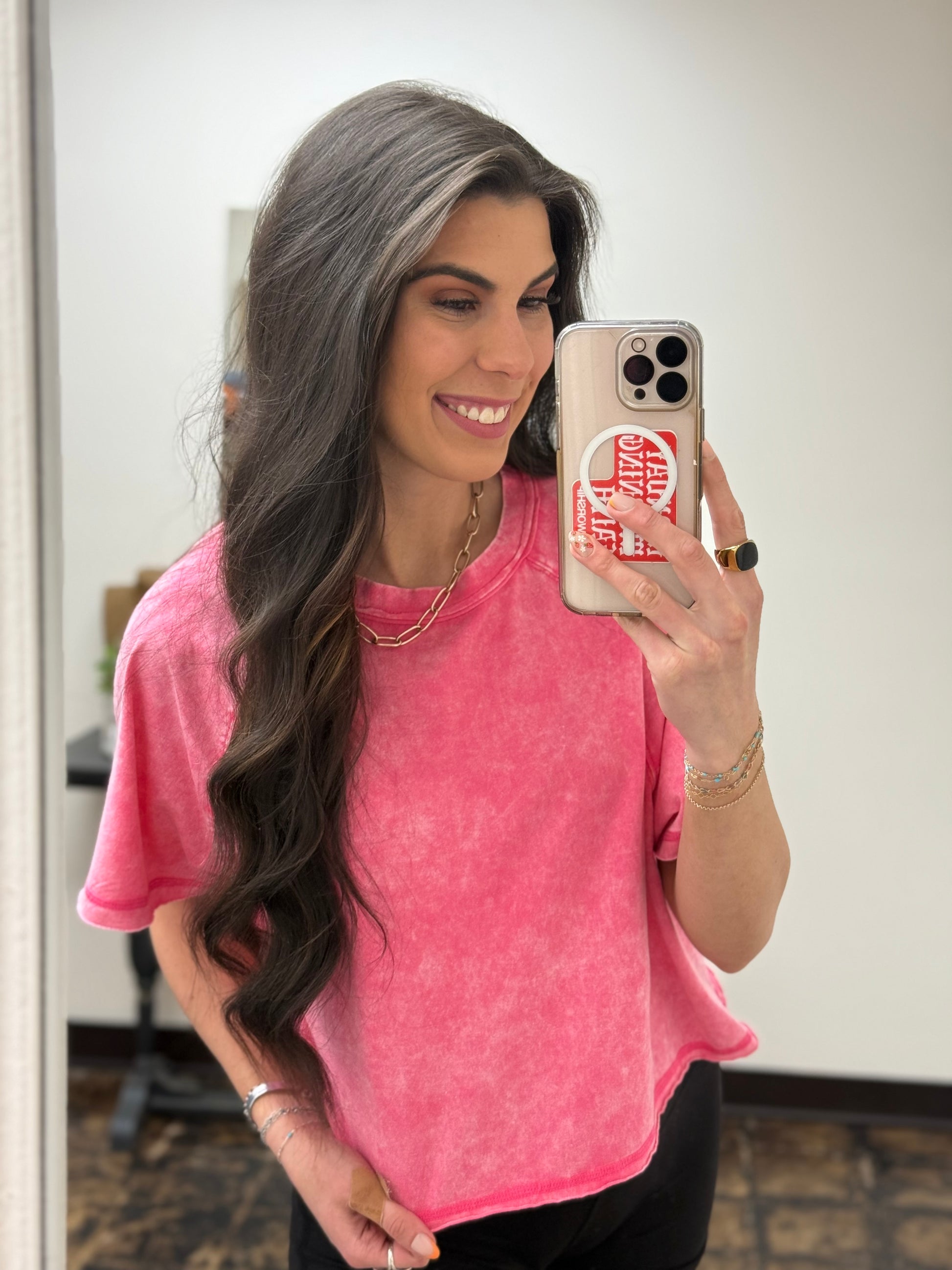 The Audrey Acid Wash Cropped Tee - Fuchsia