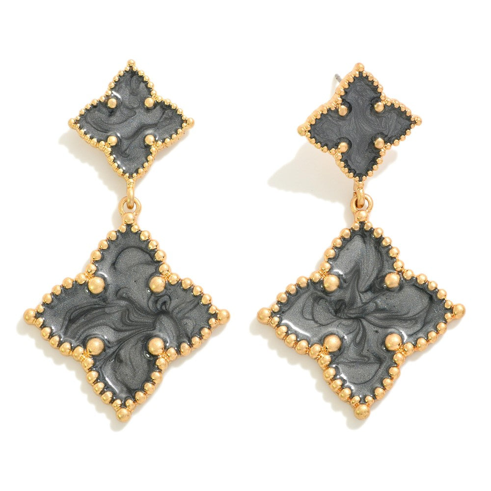 Linked Resin Enamel Swirl Clover Drop Earrings