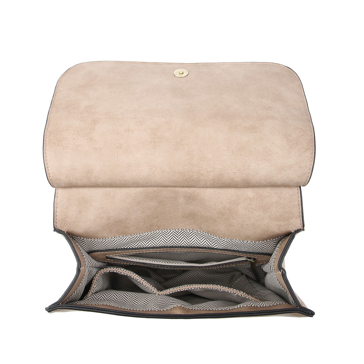 - Inside compartment features 2 card pockets and a 6" x 5" zippered compartment