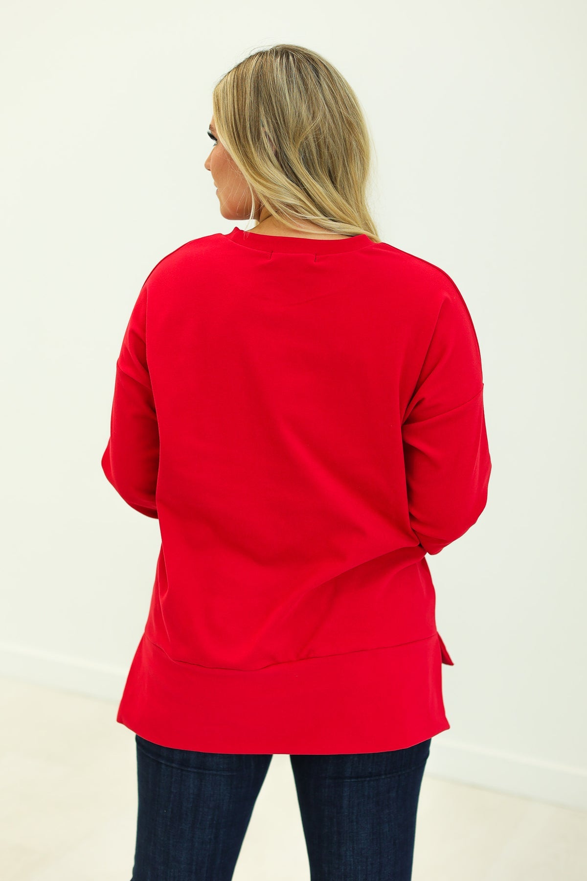 Featuring a relaxed fit and some stretch, this crewneck sweatshirt ensures a comfortable, flattering wear. The unlined design adds to its lightweight feel, while the crew neck provides a classic touch. The split hem enhances the silhouette with a modern detail, making it easy to pair with various bottoms.