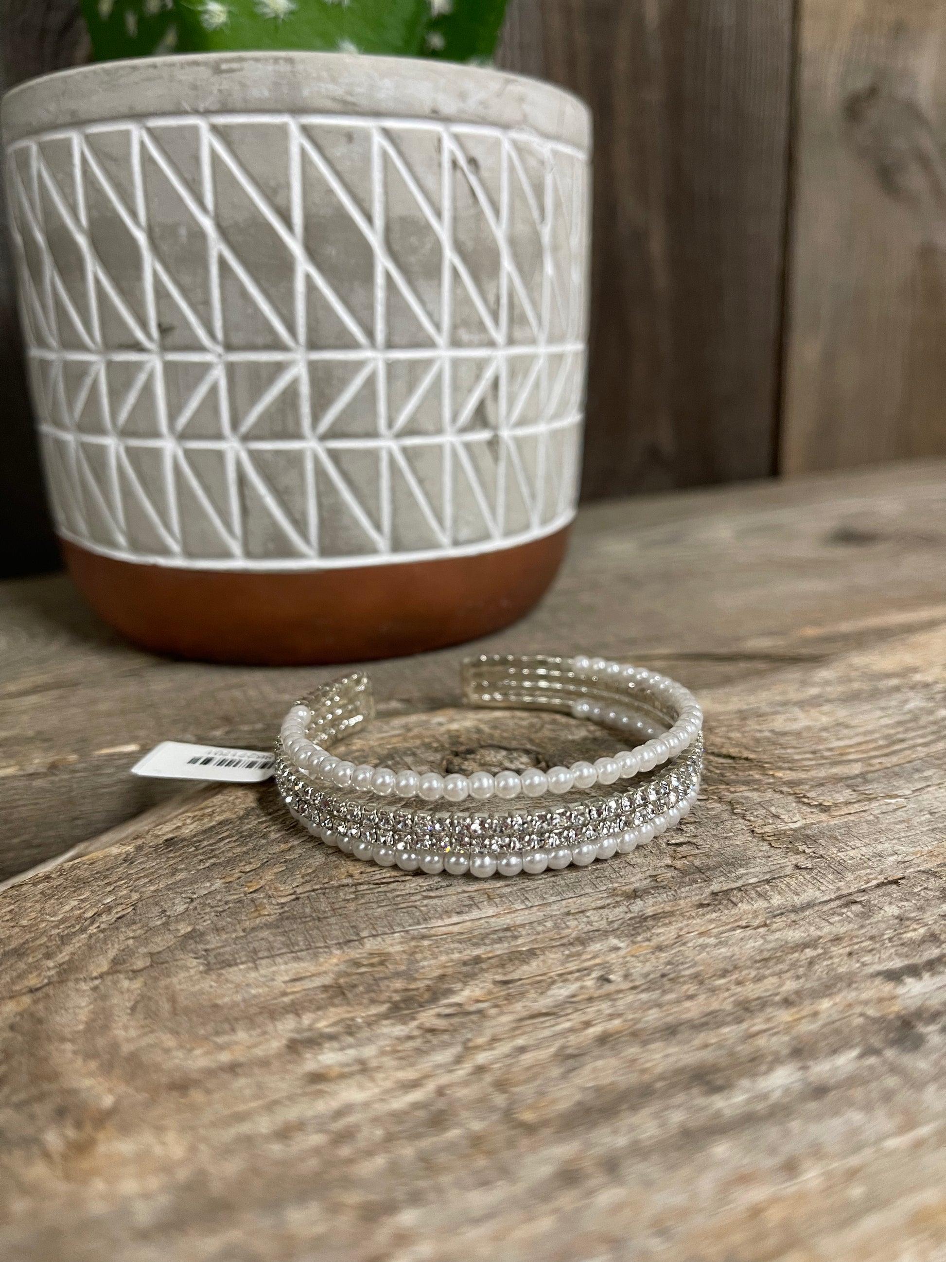 - Rhinestone & pearl accents