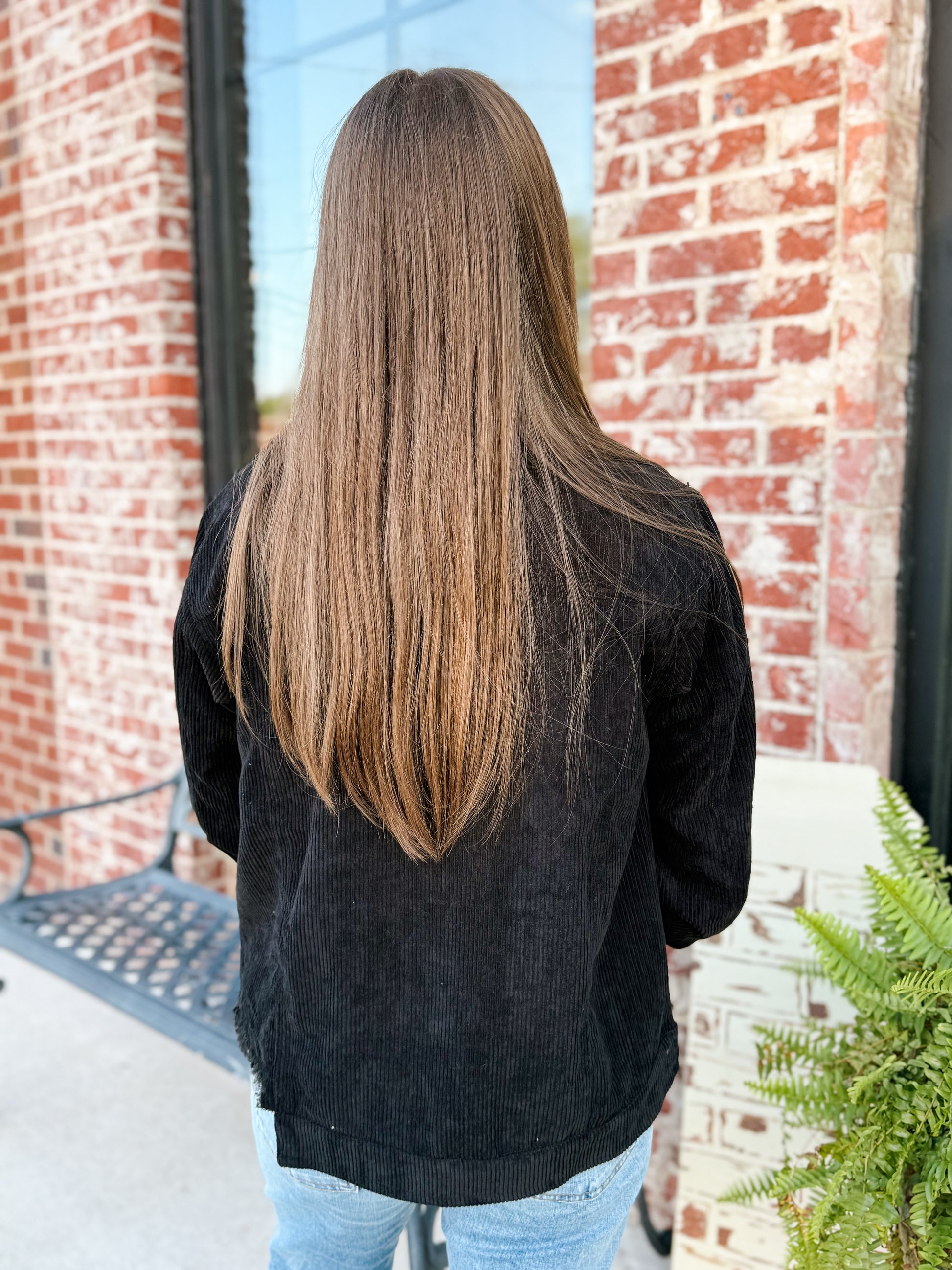 Bring some edge to your wardrobe with The Emersyn Corduroy Distressed Shacket. This cropped jacket features a stylish frayed hem and a soft corduroy texture for a playful, lived-in look that’s perfect for layering. It’s your new go-to piece to add a touch of cool without trying too hard.