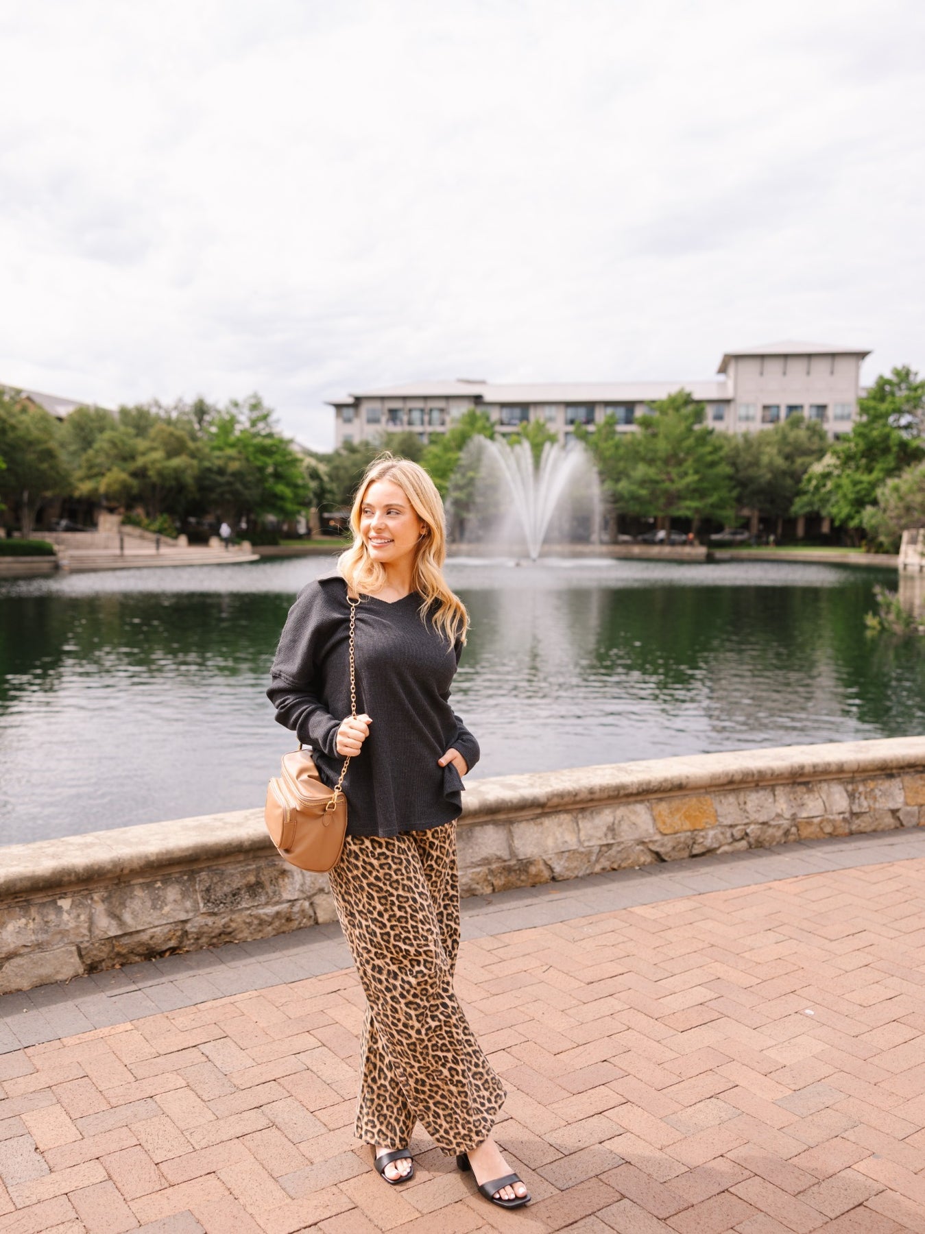 The Emilee Waffle Knit Long Sleeve Top - Black