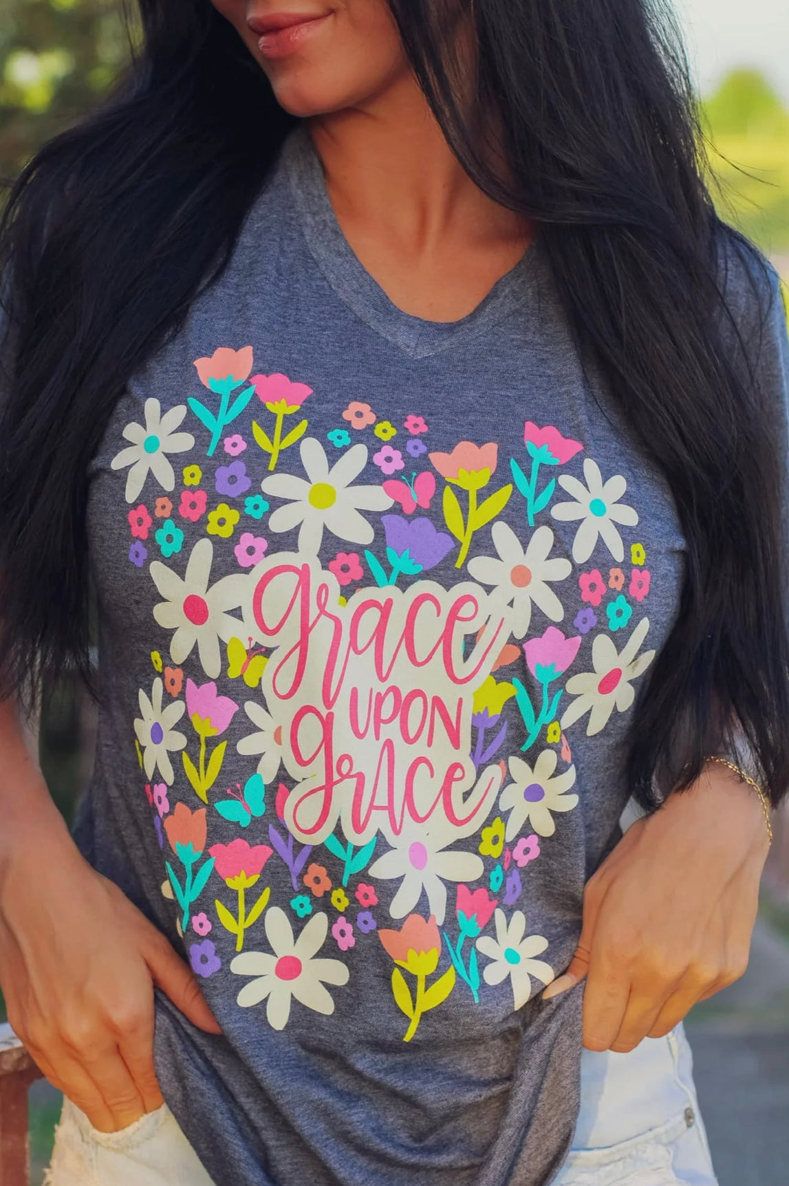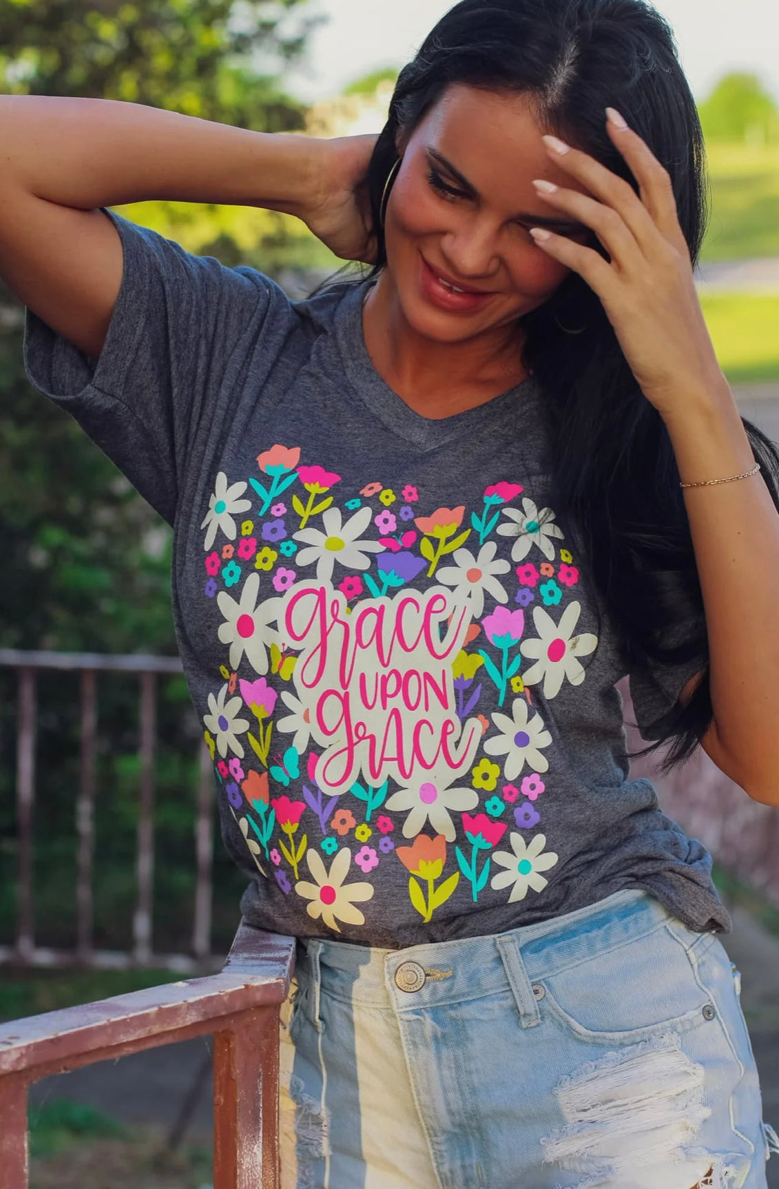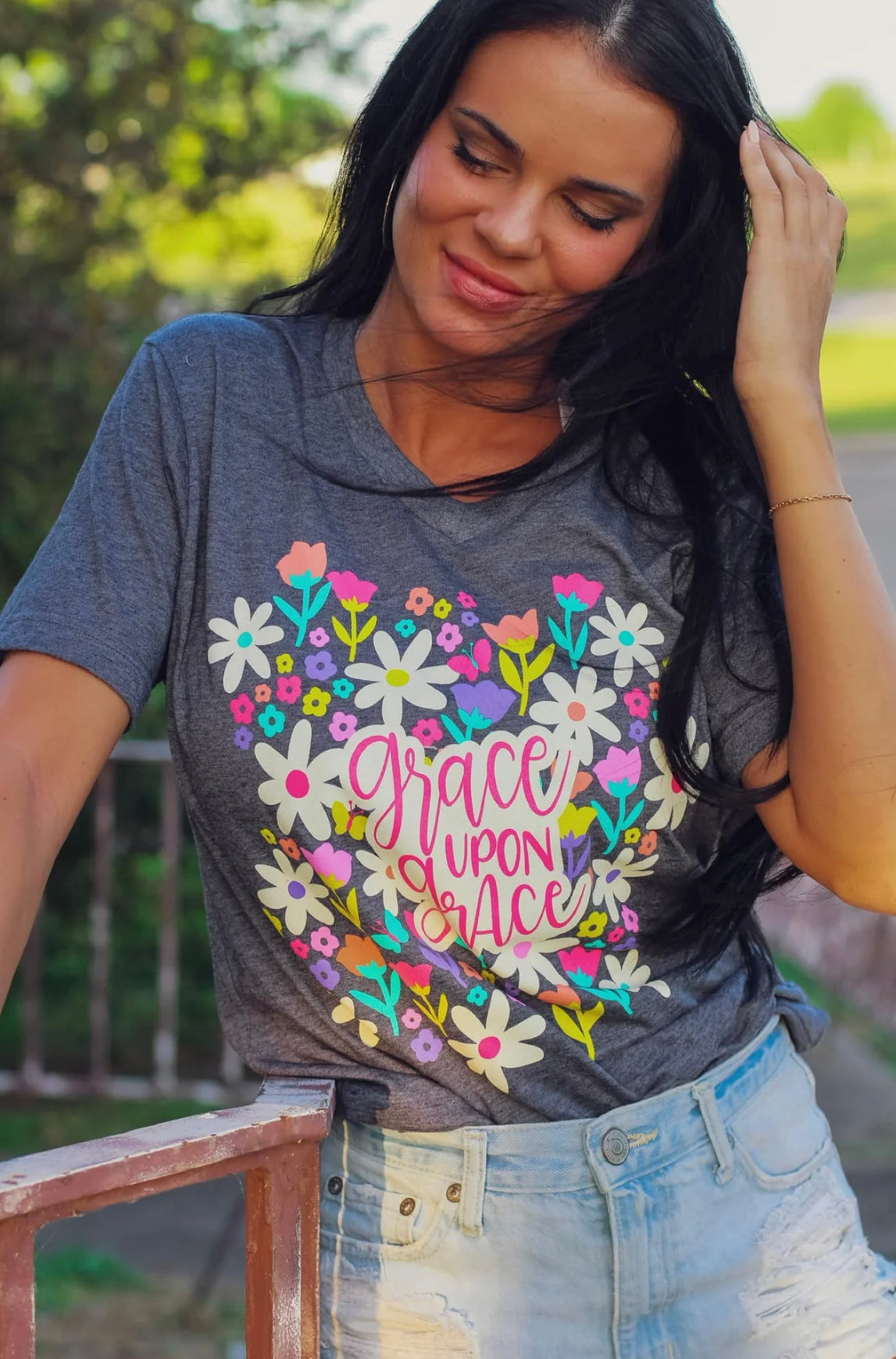 Show off your style and faith with this ultra-comfy tee! It features a bright, floral print and warm Christian message, sure to stand out from the crowd and fill your day with grace upon grace! 🌺