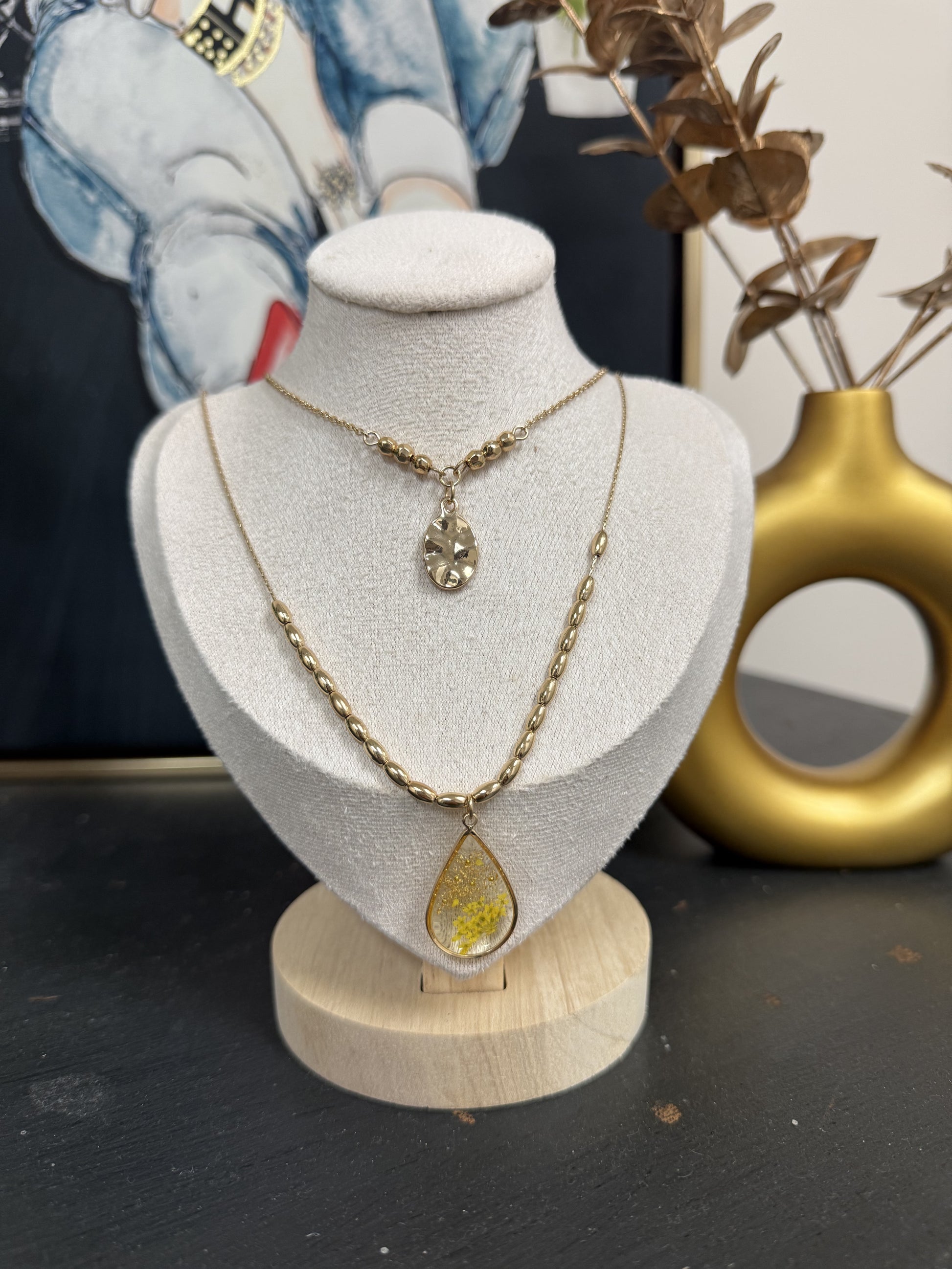 Experience the ethereal beauty of nature with The Harmony Necklace. This layered necklace features a delicate pressed flower teardrop pendant, adding a touch of whimsy to any outfit. Crafted with precision and creativity, this necklace is the perfect addition to your collection.