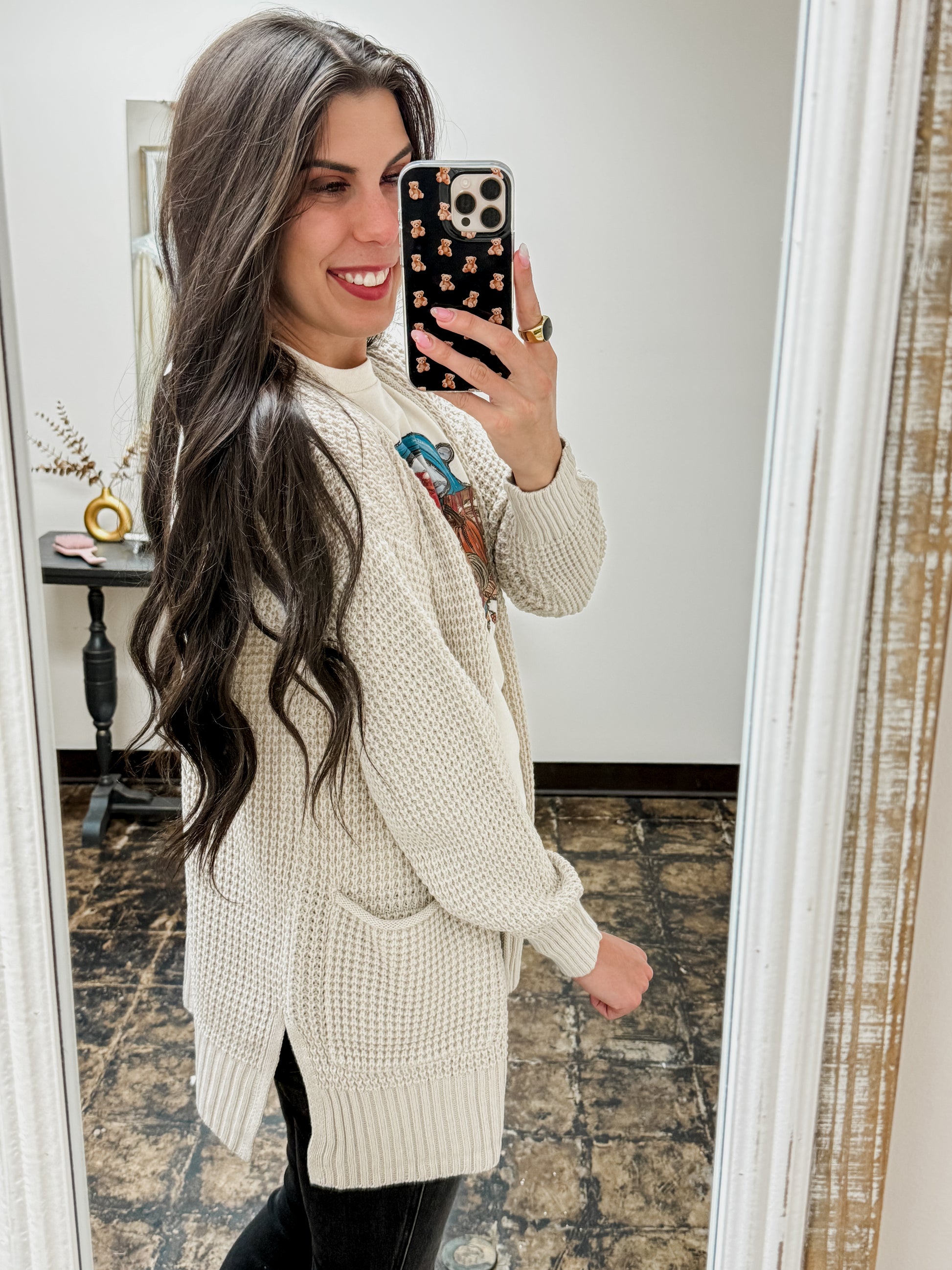 The Harrisyn Waffle Cardigan wraps you in a cozy, relaxed fit that's perfect for layering. Crafted from a low gauge midweight knit, it delivers just the right amount of warmth without feeling bulky. This quality piece brings effortless style and comfort to your everyday wardrobe with its charming waffle texture and easygoing vibe. Slip it on and let your outfit smile!