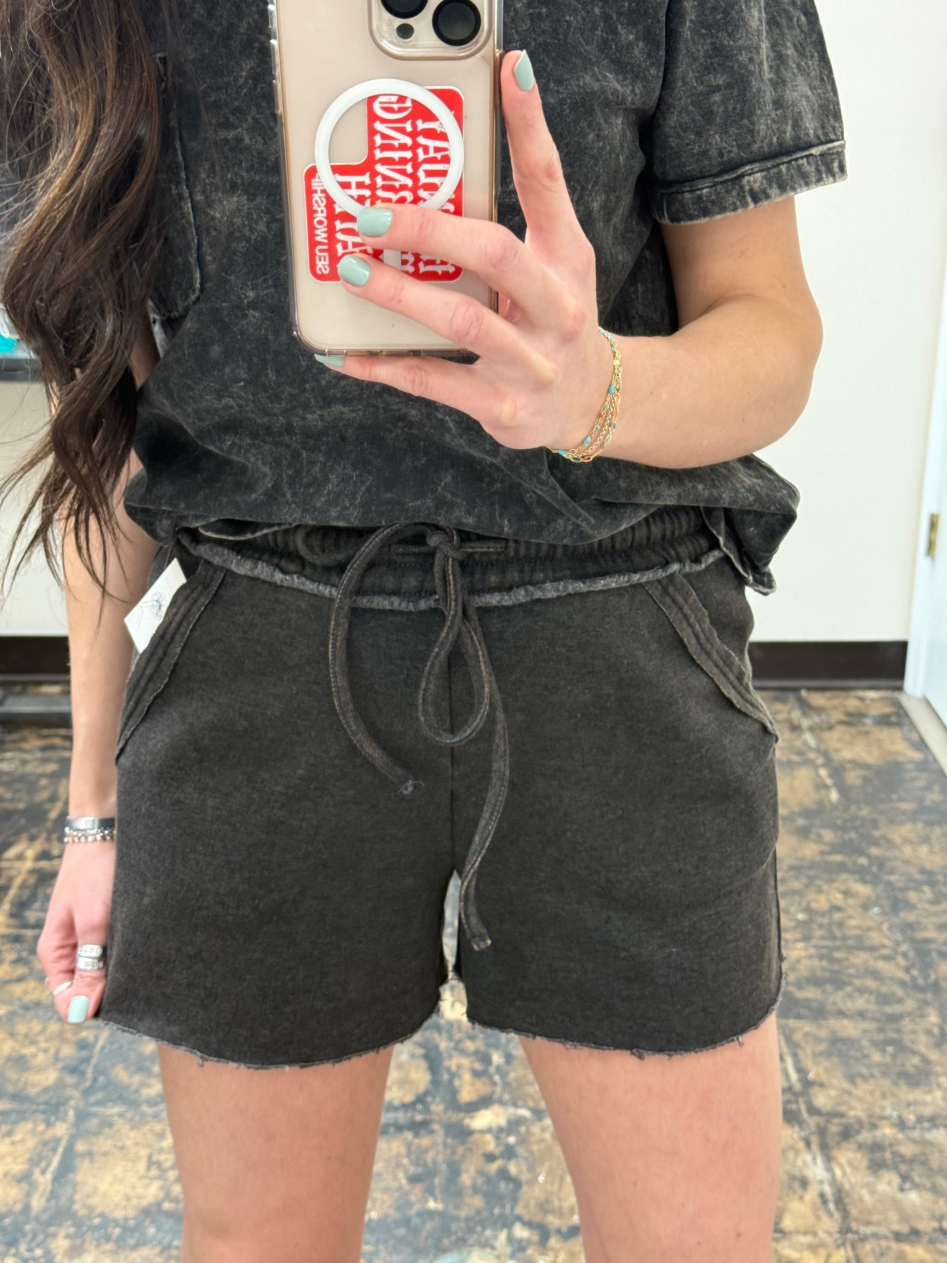 FINAL SALE - The Hayden Acid Wash Shorts - Ash Black