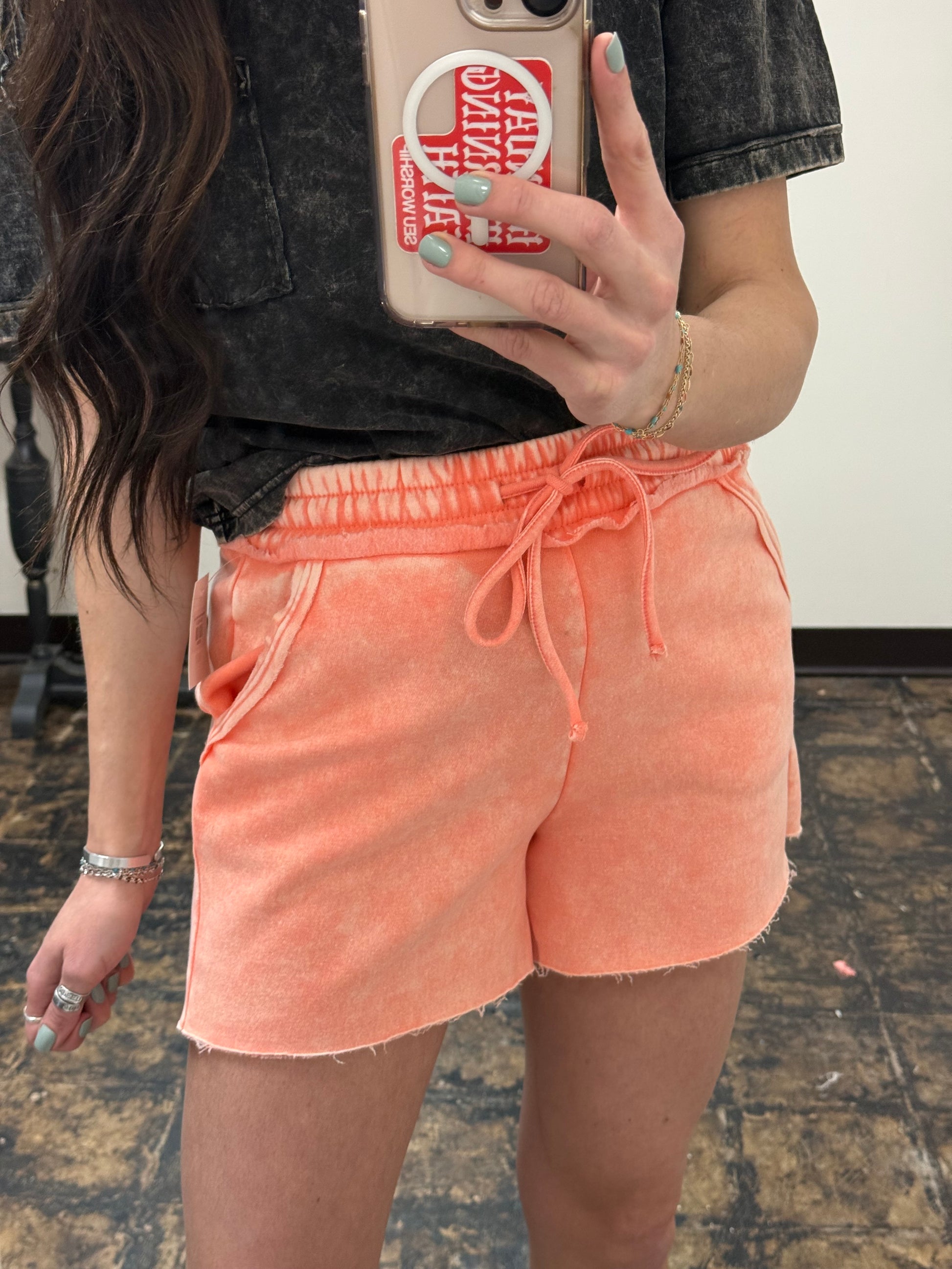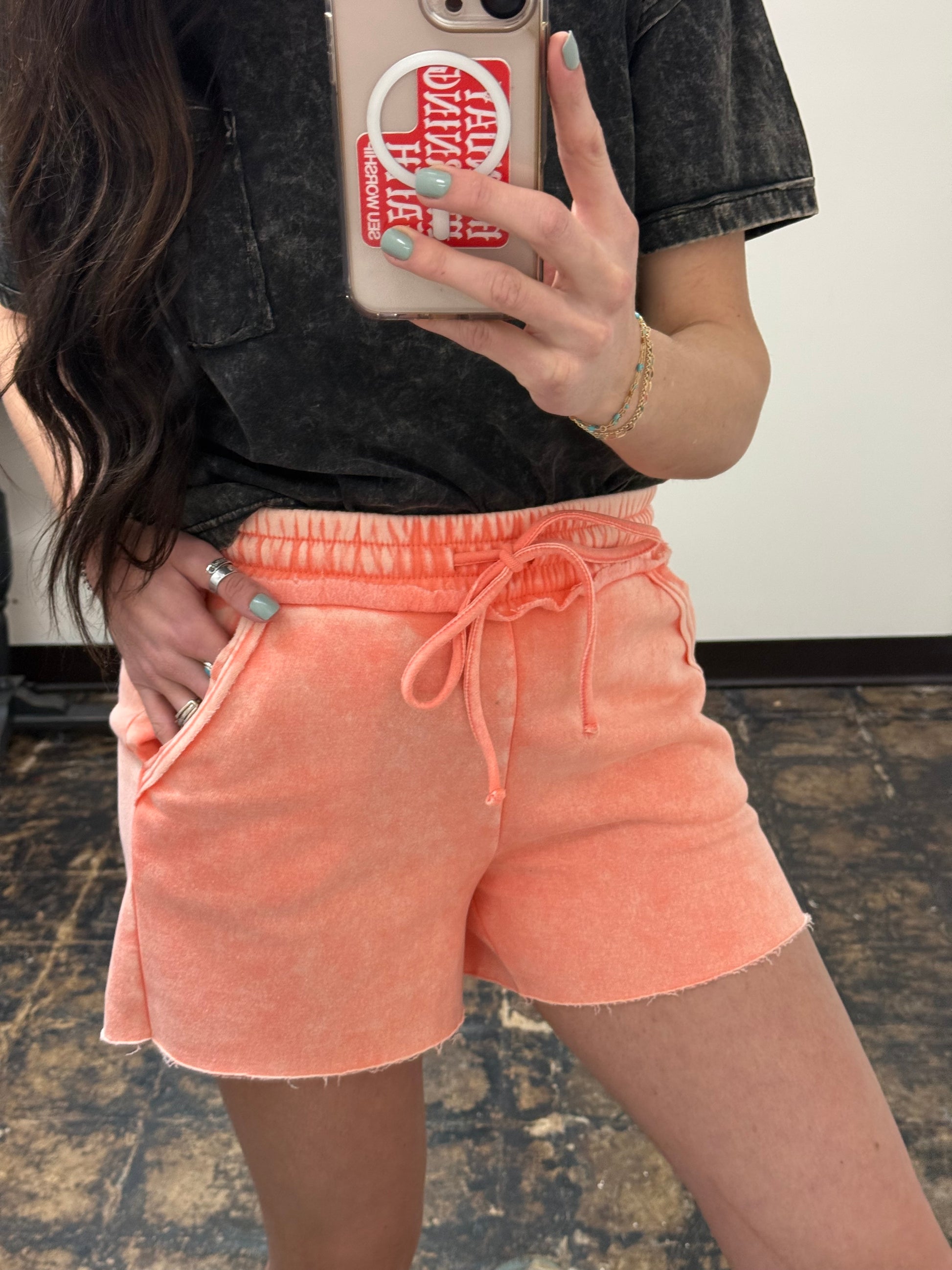 FINAL SALE - The Hayden Acid Wash Shorts - Coral