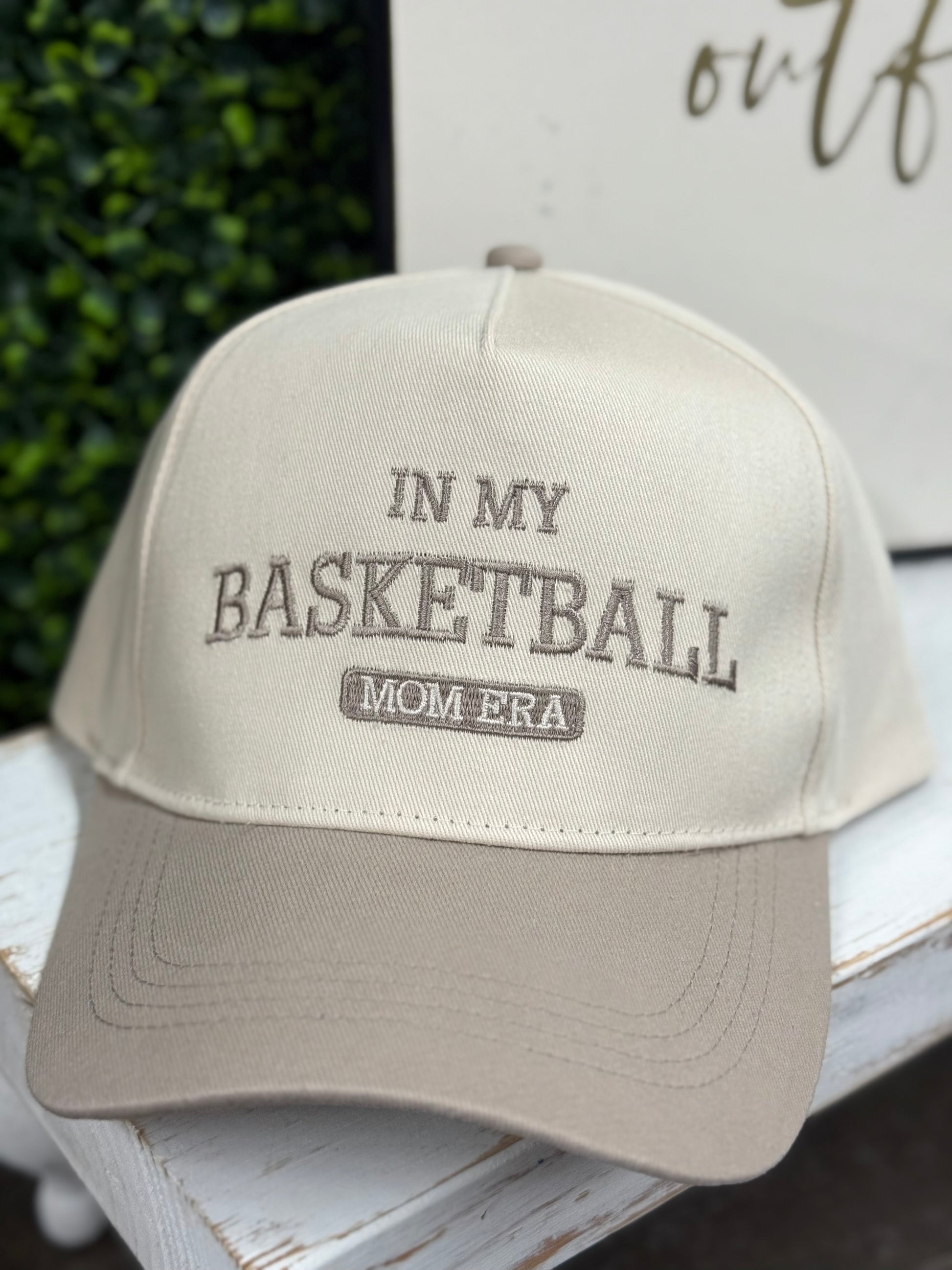 Stay stylish and show your support for your basketball player with our "In My Basketball Mom Era" baseball cap. This embroidered two-tone cap will keep you cool and comfortable during games, while also displaying your love for the game. Perfect for any proud basketball mom.