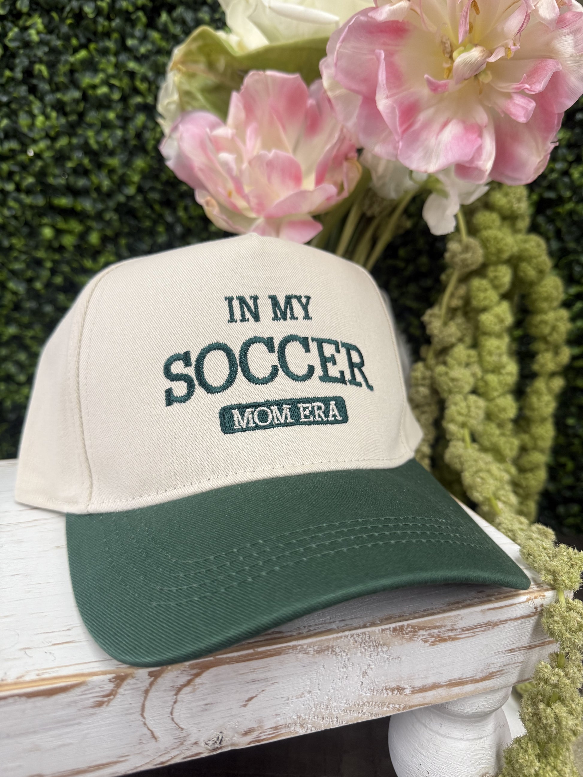 Stay stylish and show your support for your soccer player with our "In My Soccer Mom Era" baseball cap. This embroidered two-tone cap will keep you cool and comfortable during games, while also displaying your love for the game. Perfect for any proud soccer mom.