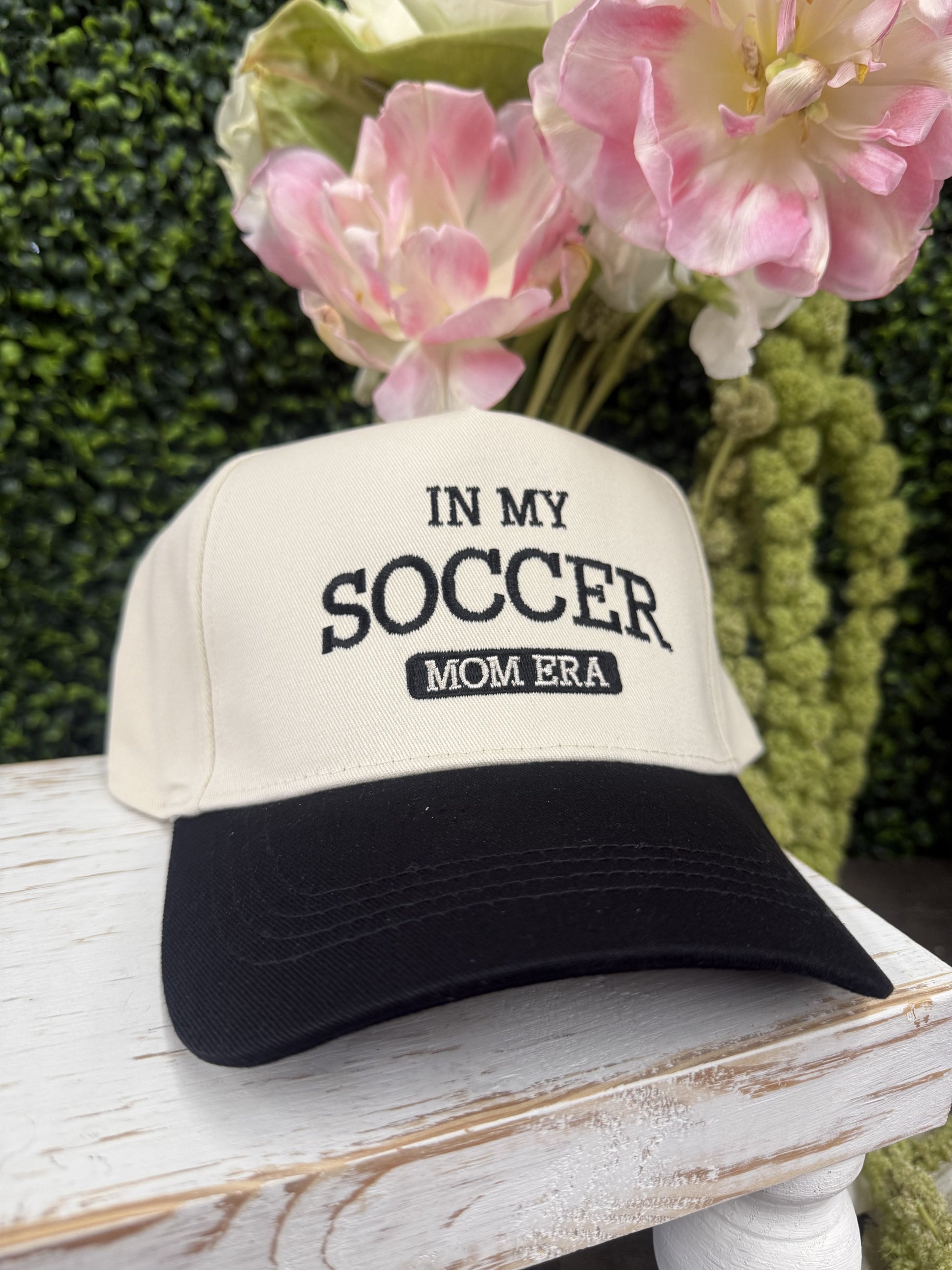 Stay stylish and show your support for your soccer player with our "In My Soccer Mom Era" baseball cap. This embroidered two-tone cap will keep you cool and comfortable during games, while also displaying your love for the game. Perfect for any proud soccer mom.
