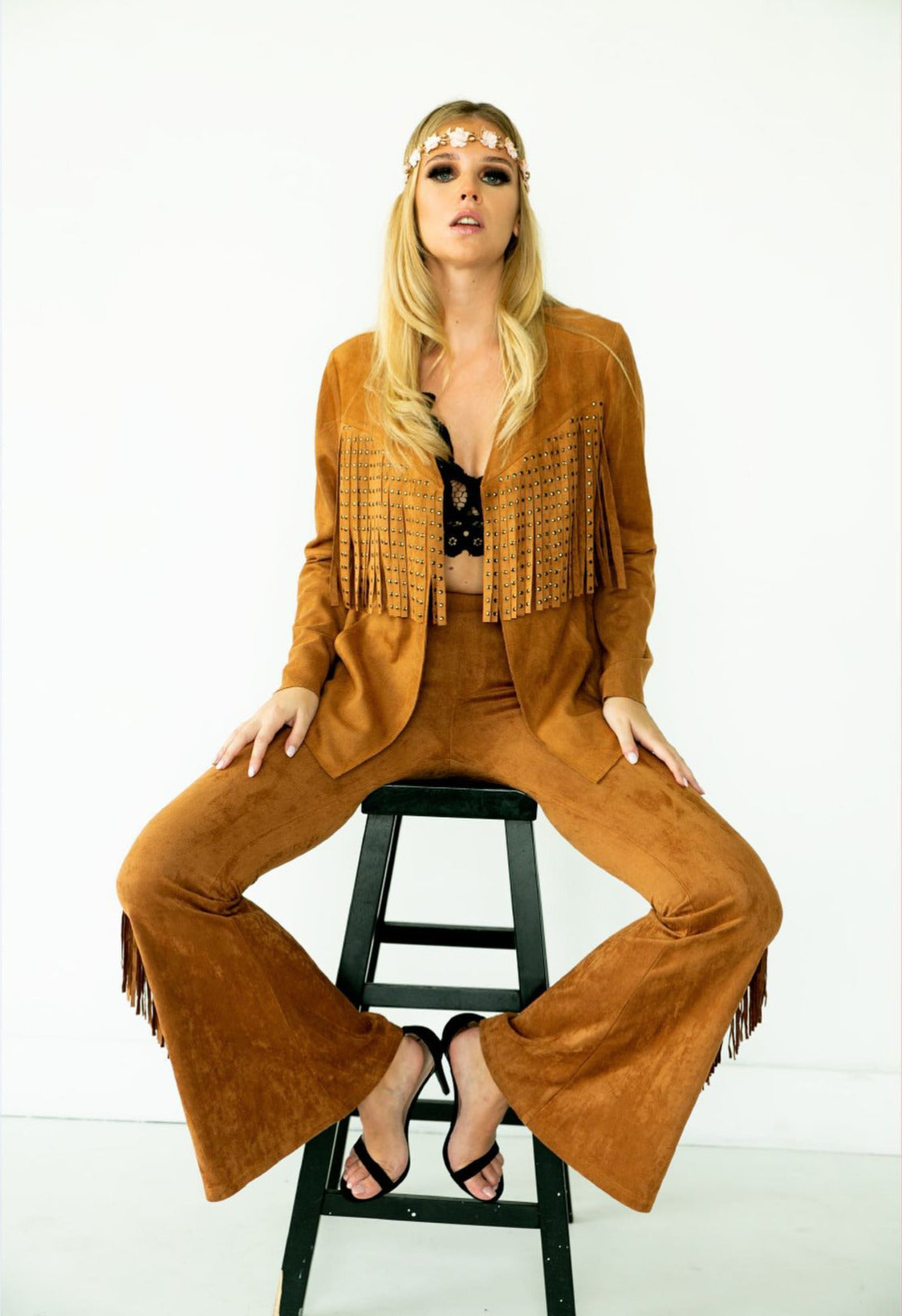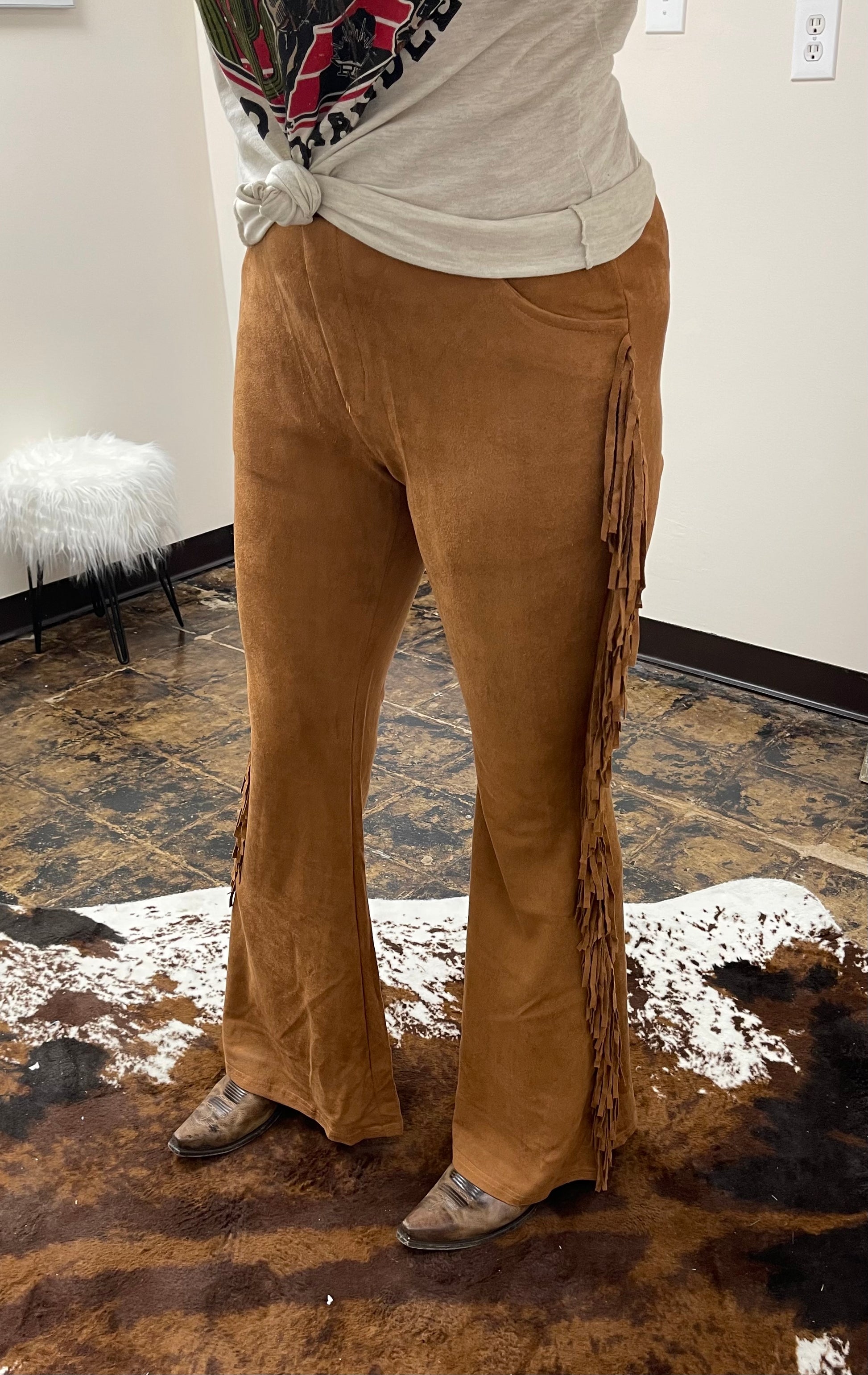 FINAL SALE - The Josie Fringe Bellbottom Suede Pants - Camel