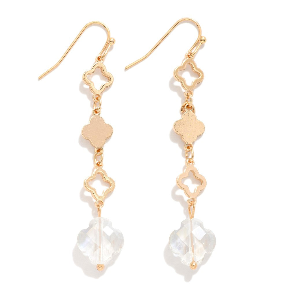 Metal Tone & Glass Crystal Linked Clover Drop Earrings