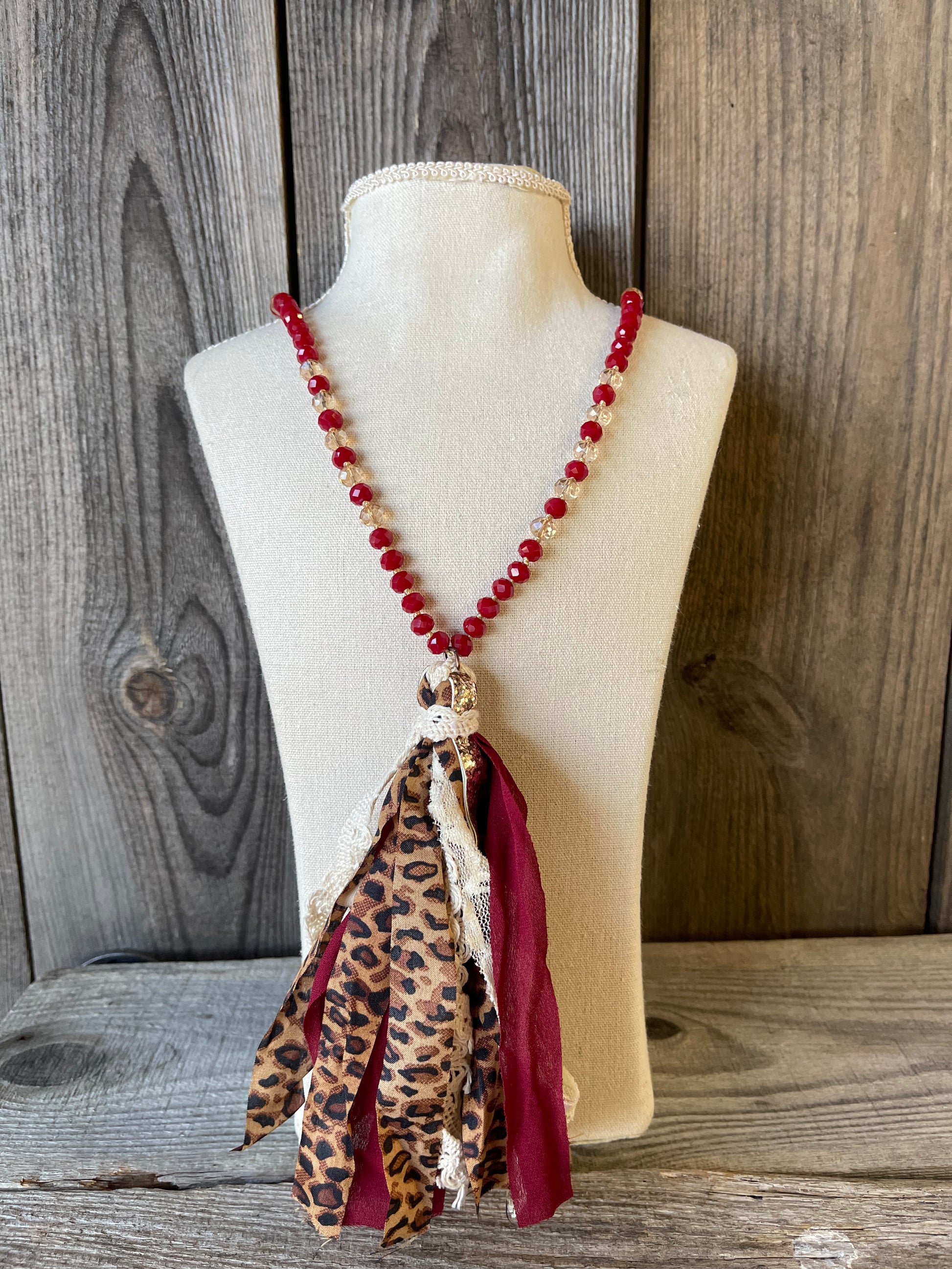 - Multi fabric tassel (Leopard, Gold Glitter, White & Ivory Lace, Wine)