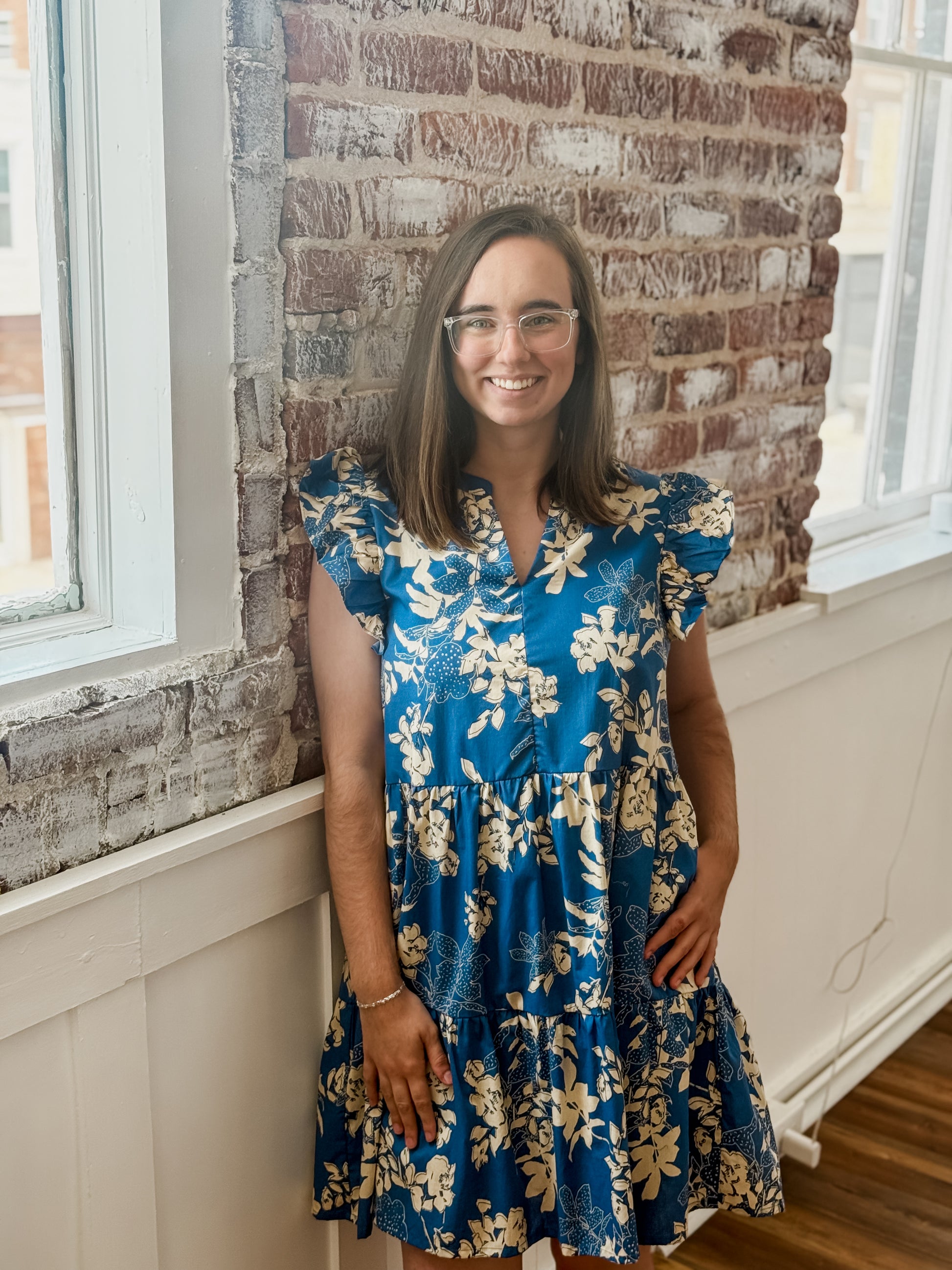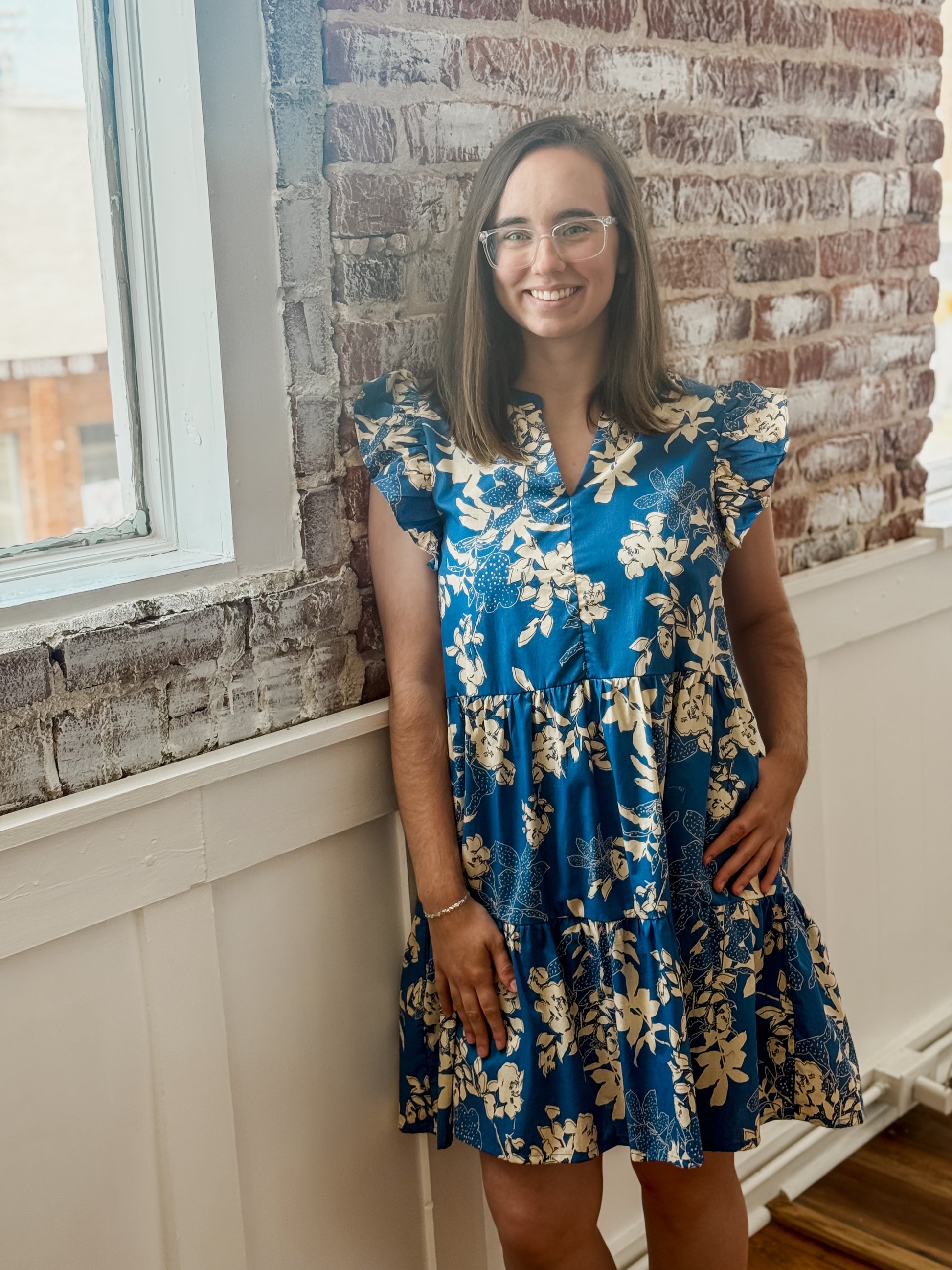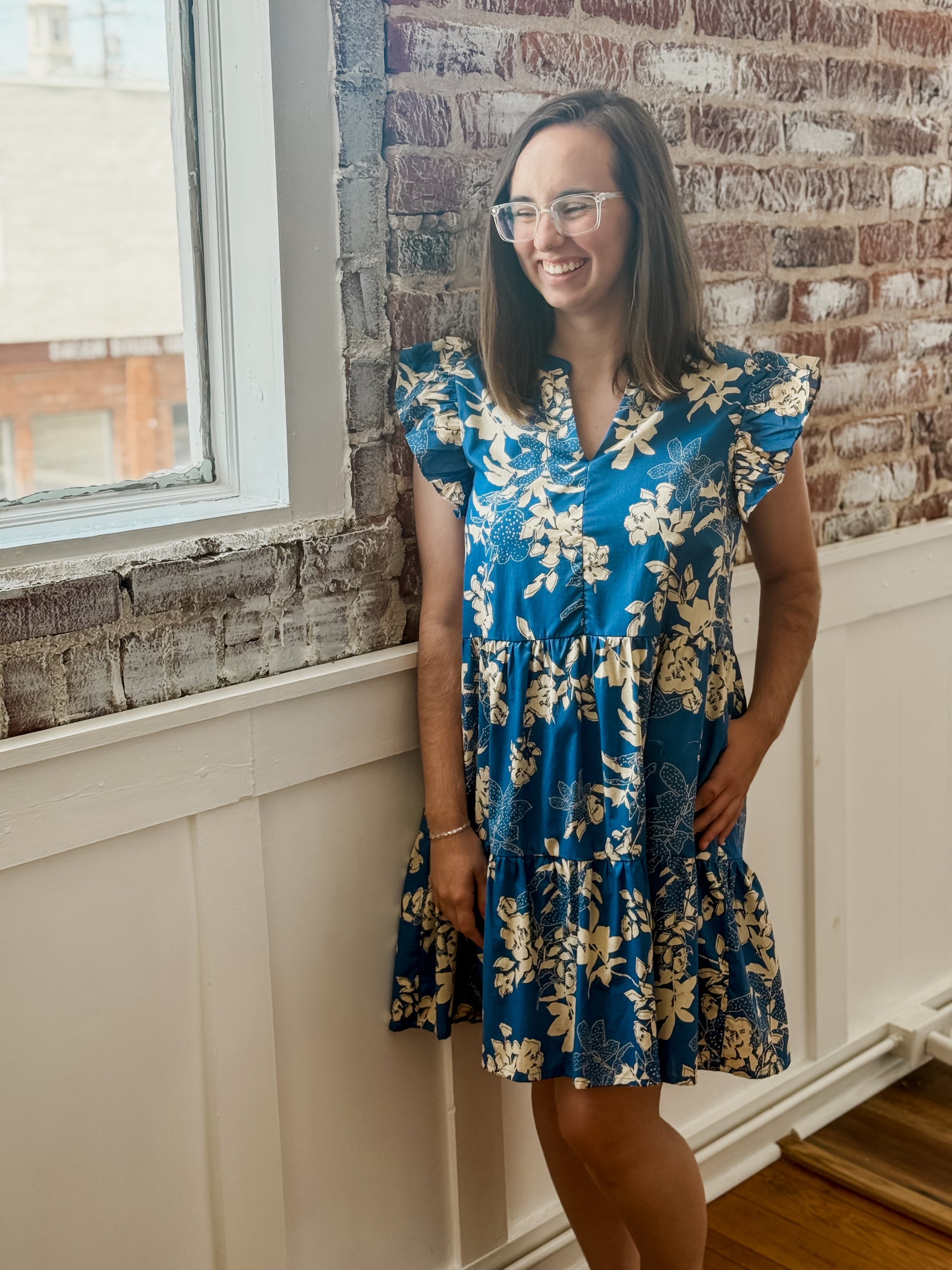 Expertly designed for the fashion-forward individual, The Leighton Frill Dress boasts a beautiful floral print and a flattering V-neckline. The frill detail and tiered mini dress style give it a delicate, feminine touch while the relaxed fit and practical side pocket add functionality. Perfect for any occasion, this dress is a must-have addition to your wardrobe.