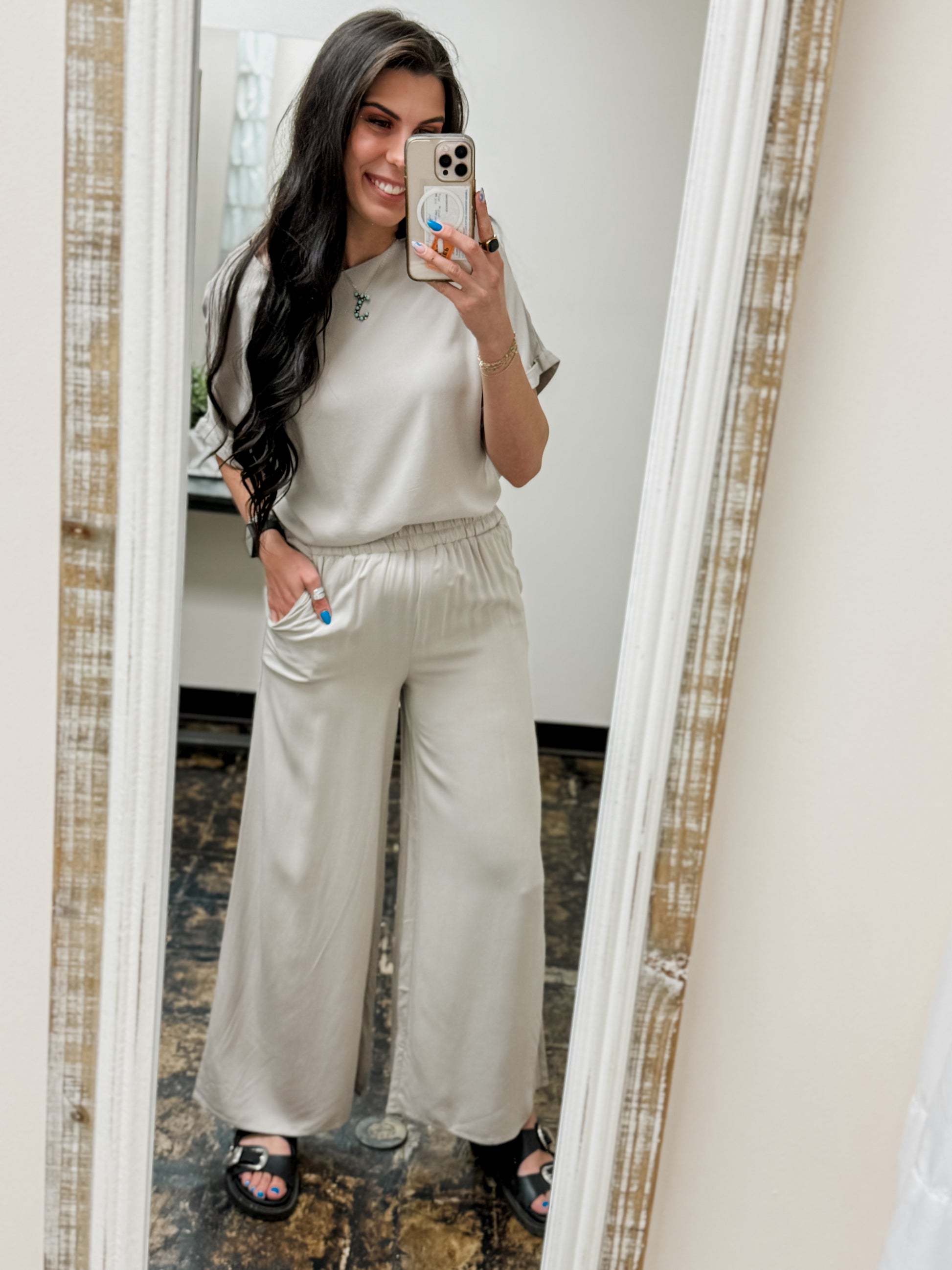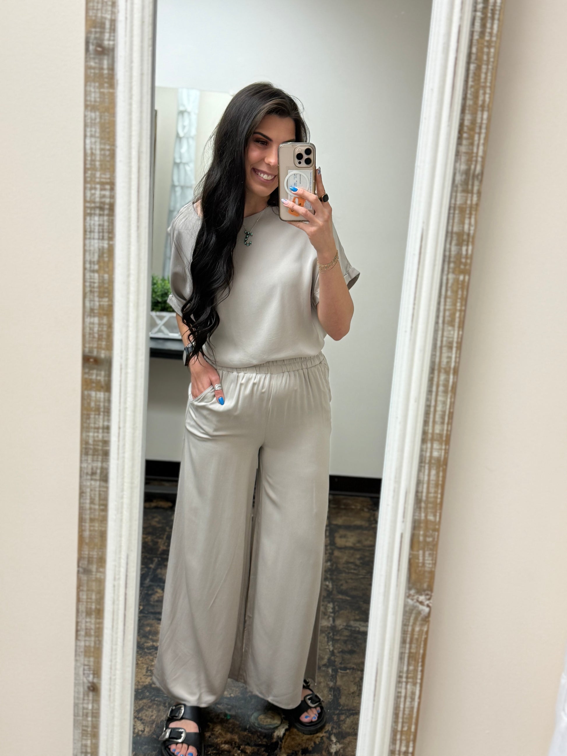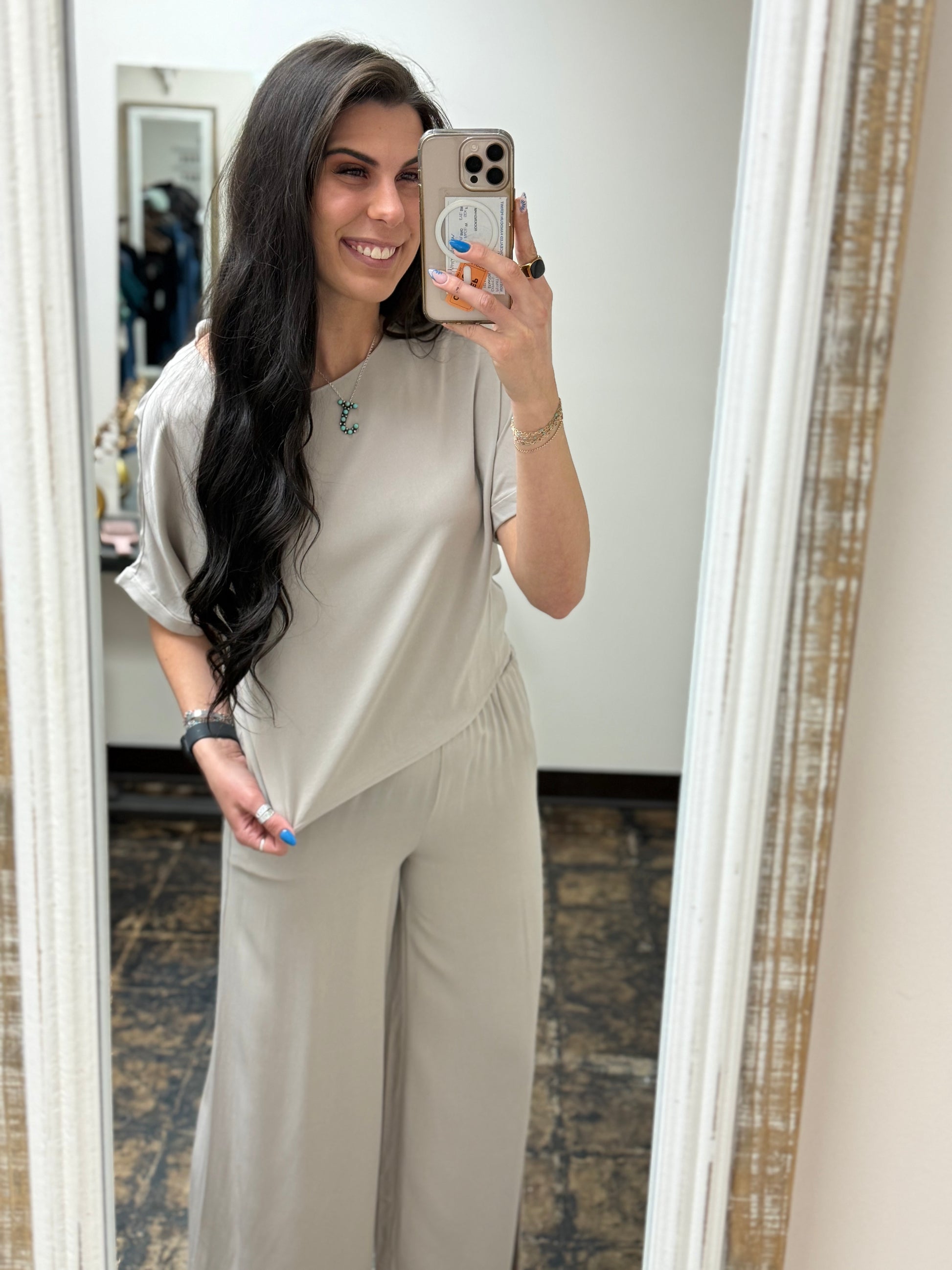 Embrace effortless style with the Louisa Pant Set in Ash Mocha. This playful duo features a breezy short sleeve top paired with flowy pants that move with you. Perfect for days when comfort meets chic, it’s your go-to for easy, breezy vibes all day long.