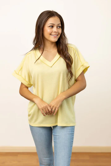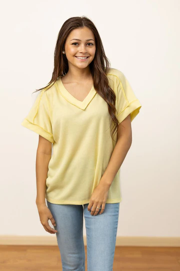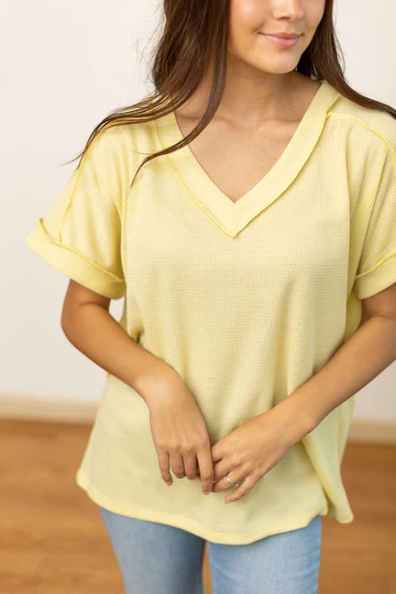 The Lucy Waffle Knit Top - Yellow