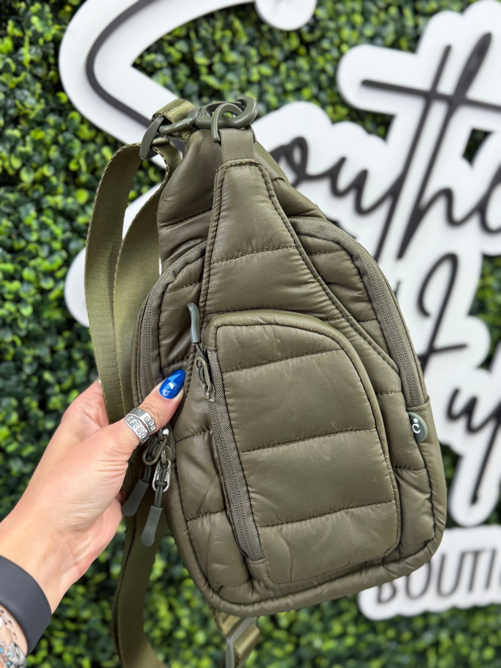 The Mindy C.C. Puff Sling Bag - Olive