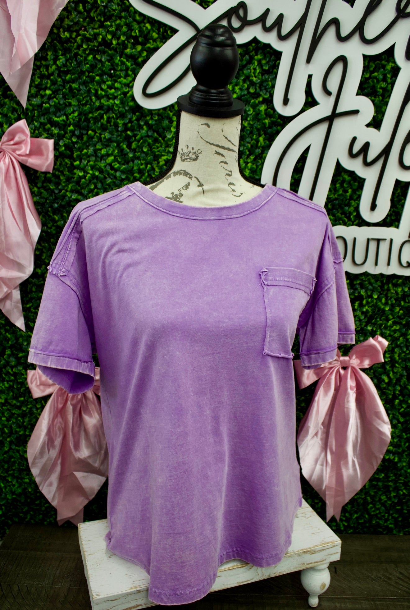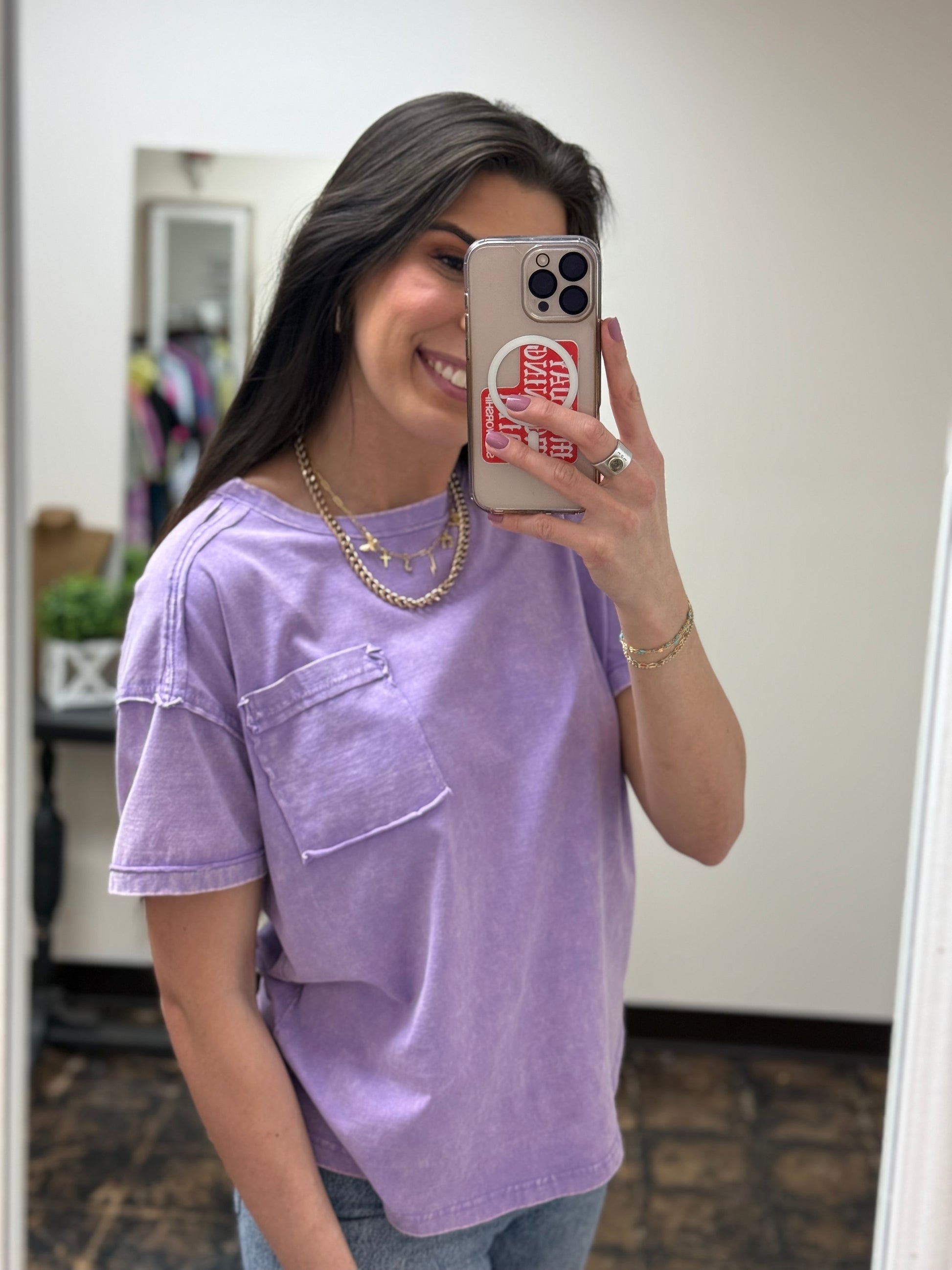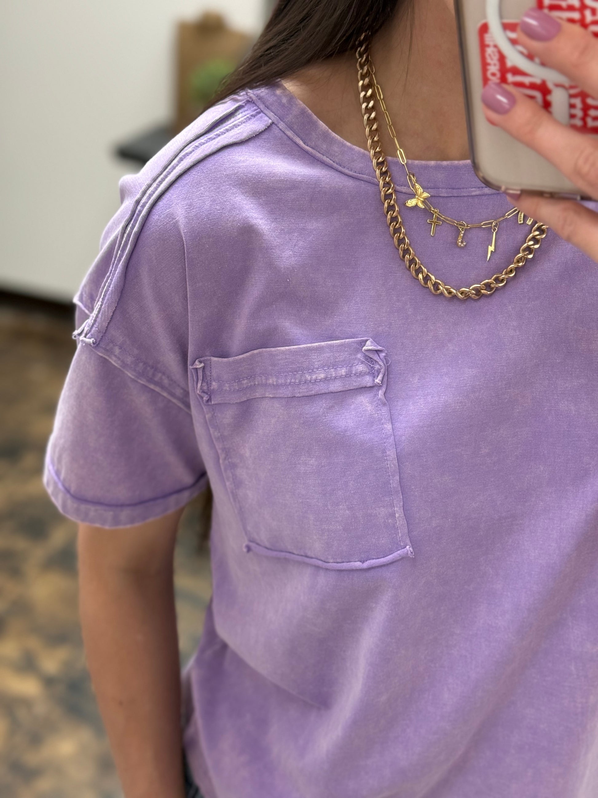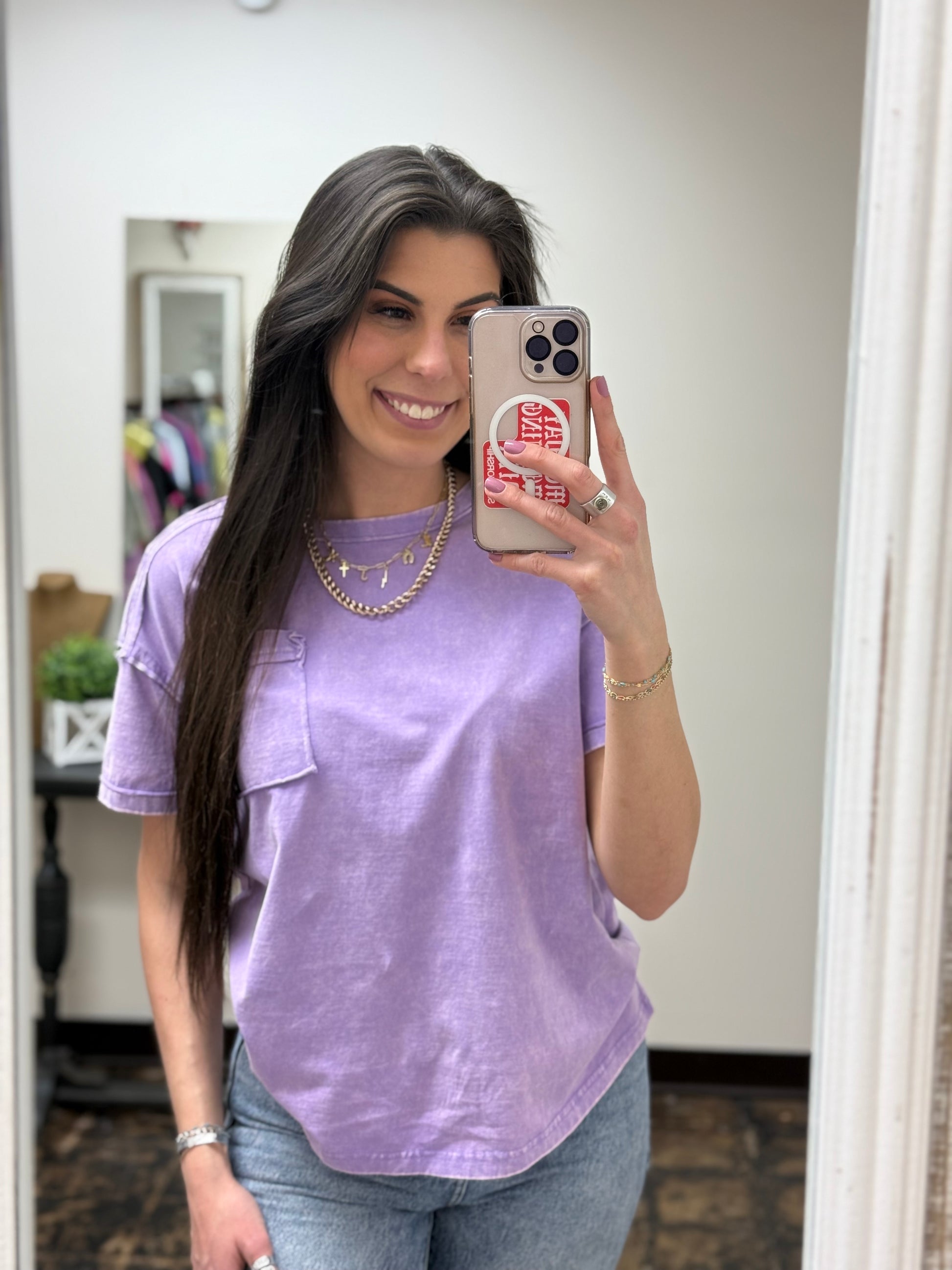 The Molly Acid Wash Tee boasts an edgy acid wash design and exposed seams for a unique twist on the classic round neck tee. The front pocket adds functionality, while the comfy material ensures all-day comfort. Perfect for effortlessly cool and comfortable style.