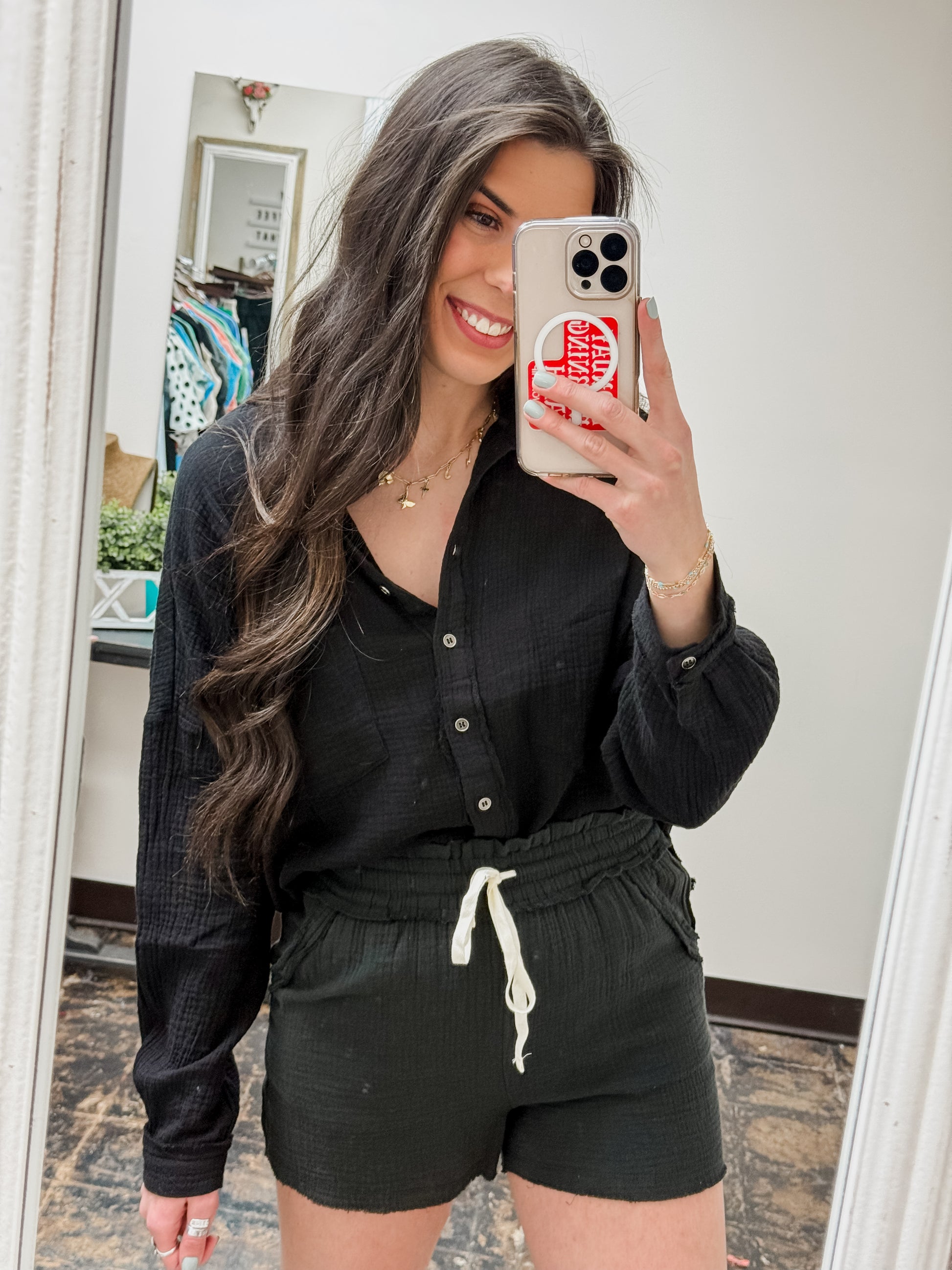 Expertly crafted from lightweight gauze material, our Monica shorts offer both comfort and style. The functional drawstring waistband and pockets make them practical for everyday wear. Perfect for any warm weather adventure or casual outing.