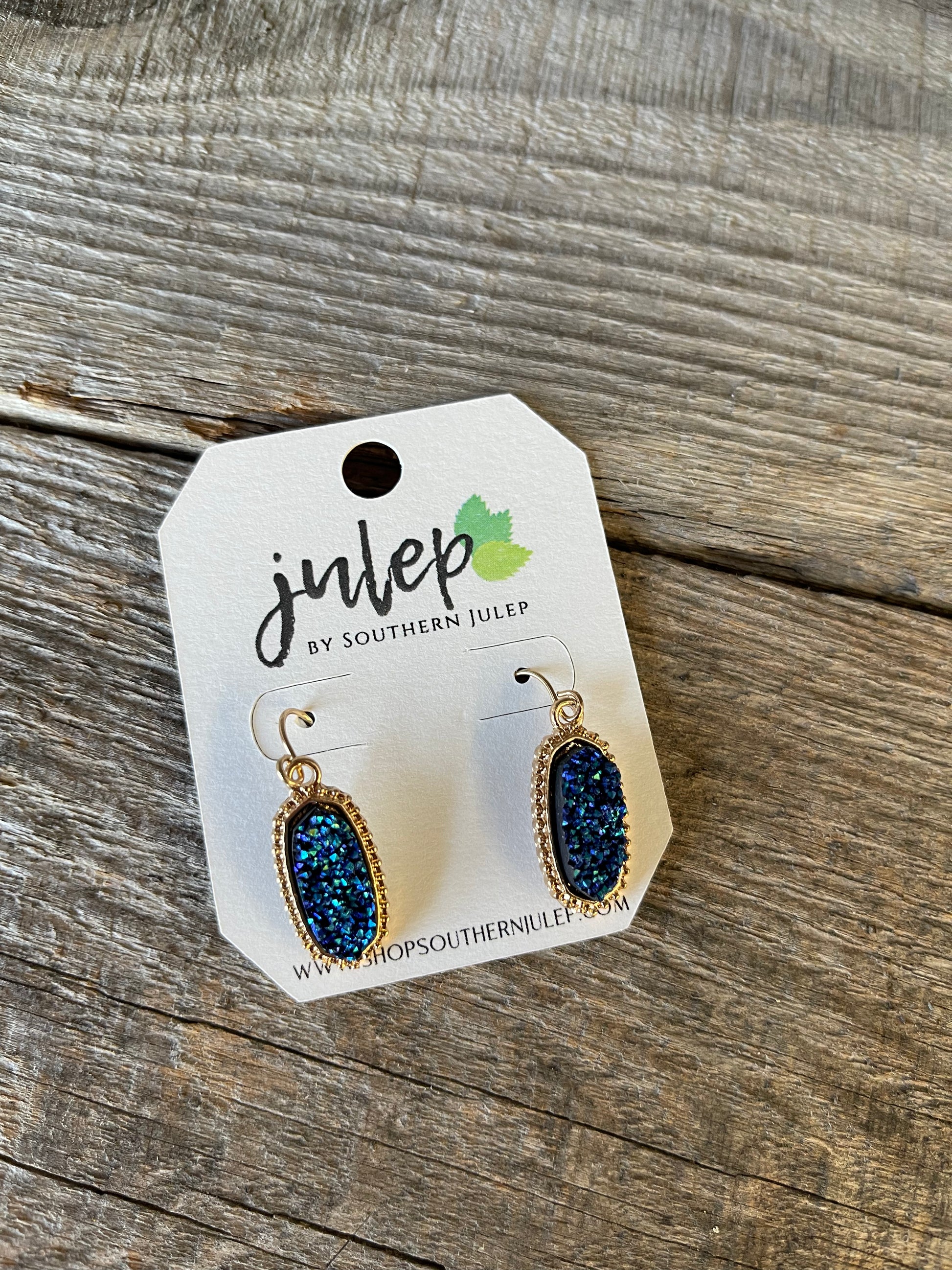 - Material: Resin crystal druzy stone, goldtone or silvertone plated zinc